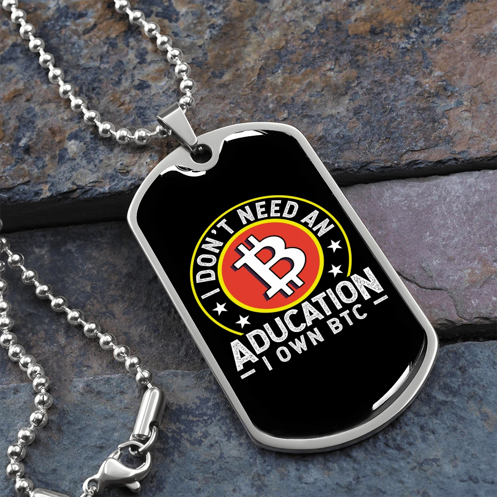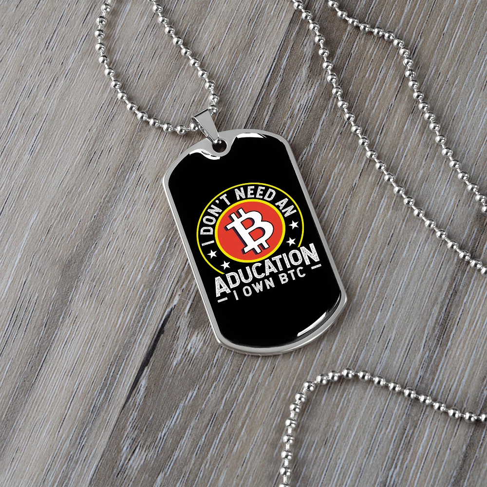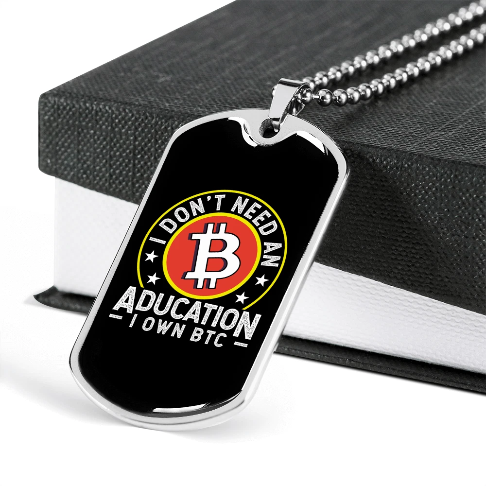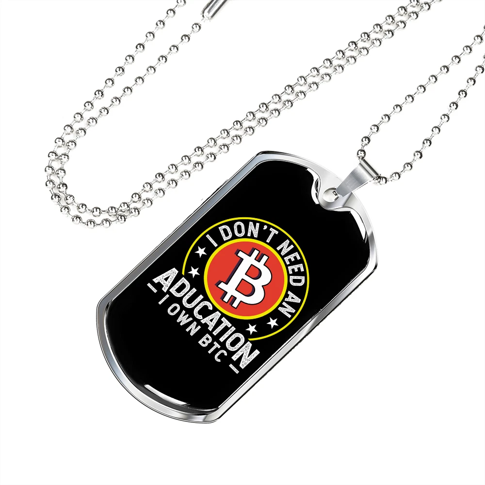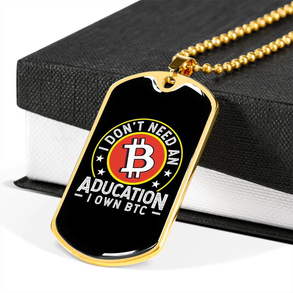 Don't Need Aducation Crypto Necklace Stainless Steel or 18k Gold Dog Tag 24" C