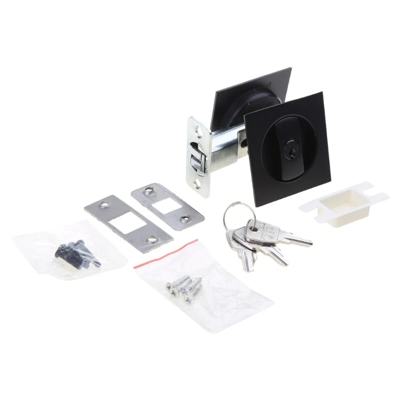 Features: Reversible-and safety: This deluxe-black pocket door lock and pull has a wide, easy grip design and is-for left or right handed door. Privacy functions allows for you to lock the door from the interior. Replace old or broken pocket door locks: When your pocket door privacy lock is broken or old, don’t replace the door entirely, just-get a-locks and pull set. Easy installation: Installation is quick and easy, plus-all black pocket door-hardware and instructions are included. The lock set is non handed. Easy to use: Latch-has round corner faceplate for privacy and entry function. Designed For Sliding-Door,Design Eliminates Need To Cut-Notch In New Door. Specifications: Material: Stainless Steel Color:Black/ Silver Size:Approx.6.6x6.6cm/2.59x2.59" Package Includes: 1 Piece Black Pocket Door-Hardware note: Please allow 1-2cm errors due to manual measurement,Please make sure that you do not mind before you order. Due to the difference between different monitors, the picture may not reflect the actual color of the item.