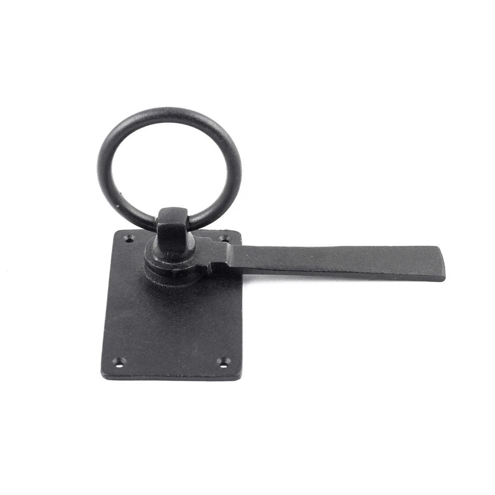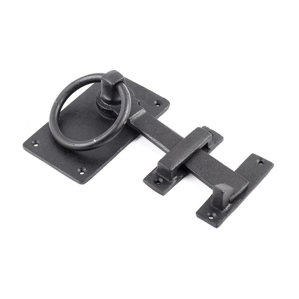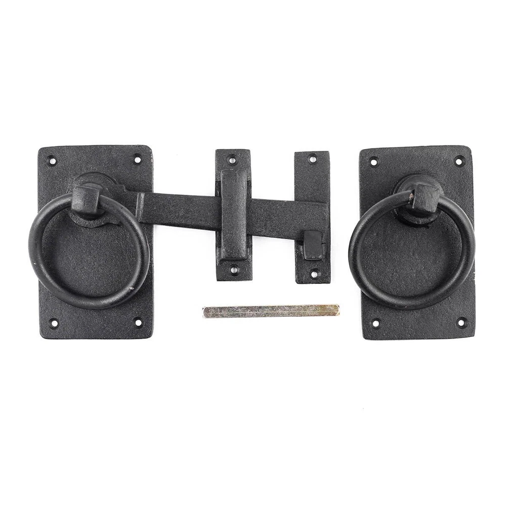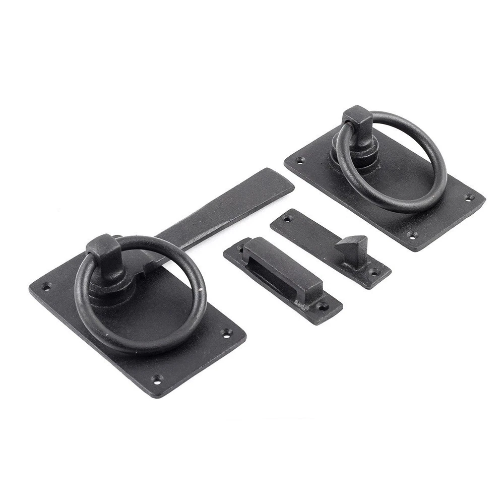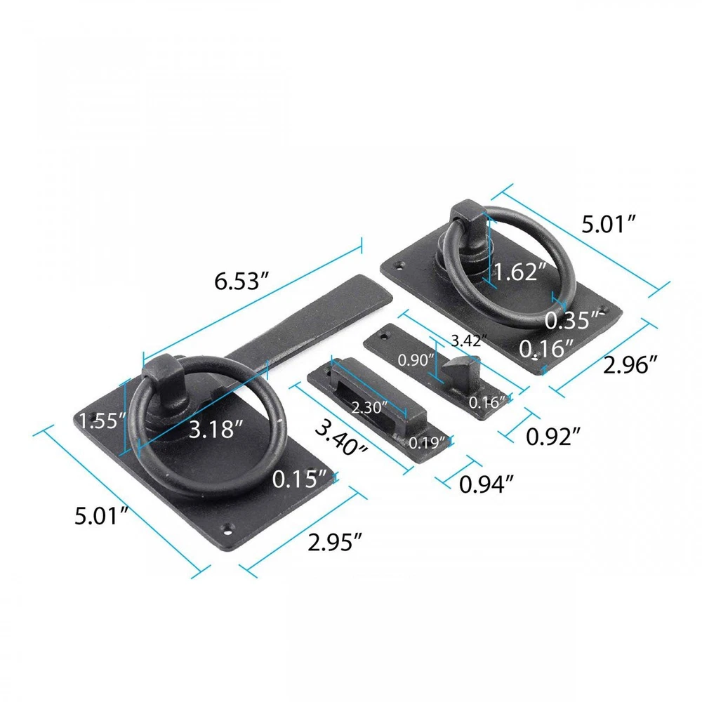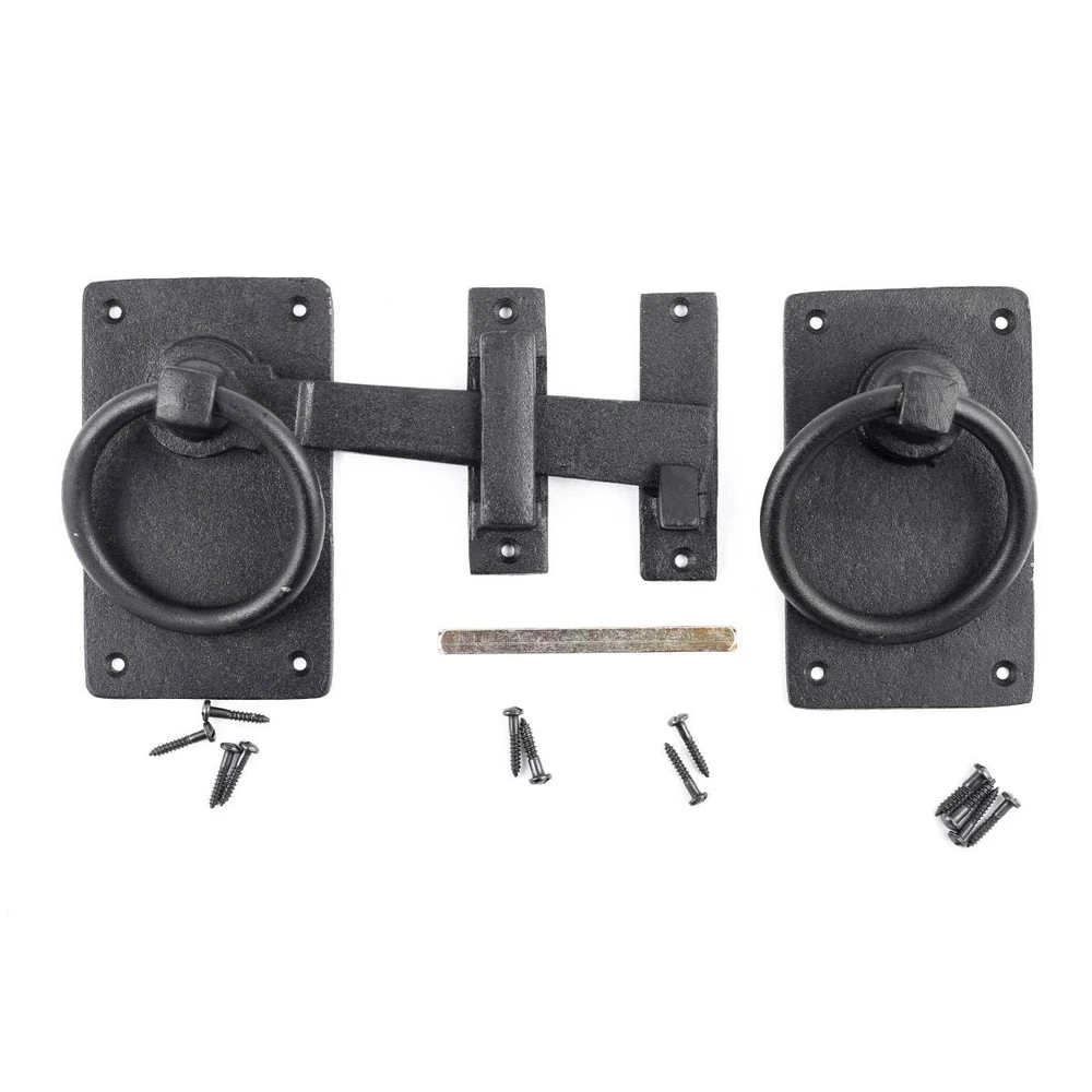 Enhance the and style of your gates with the Renovators Supply Black Wrought Iron Door Gate Turn Ring Flip Latches. These meticulously crafted colonial door latch reproductions exude vintage charm, perfect for adding character to barn doors, fences, and farmhouse gates alike. Crafted from durable wrought iron, these flip gate latches are designed to withstand outdoor elements with ease. A protective coating ensures longevity, making them ideal for outdoor use in any weather condition. The -sided latch opens in both directions, offering versatility and convenience for left or right-handed operation. Included mounting screws make installation a breeze, allowing you to affordably update old gates and doors without hassle. With an overall measurement of 6.5 inches in length, 5 inches in width, and 2 inches in projection, these latches are suitable for various door and gate sizes. our straightforward installation guide for easy setup. Simply mark the screw holes, drill the center hole for smooth spindle rotation, connect the main ring flip latch, adjust the spindle bar to fit your gate's thickness, and install the flip latch using the provided screws. Complete the installation by attaching the remaining latch parts and adjusting the flip latch for secure locking and unlocking. Elevate your curb appeal and create a lasting impression with the Renovators Supply Black Wrought Iron Door Gate Turn Ring Flip Latches. Whether you're securing a backyard fence, a shed door, or a pool gate, these heavy-duty latches offer reliability and style that endure. Upgrade your gate locks with confidence, knowing you've invested in quality craftsmanship and timeless design. Experience the perfect blend of functionality and aesthetics with these versatile gate latches, designed to complement any outdoor space with a touch of antique elegance. DURABLE MATERIAL - Crafted from sturdy wrought iron with a steel spindle bar, this black barn door gate latch is designed for durability and strength. While primarily recommended for indoor use, it can also be applied outdoors with a protective coating for added longevity. PRECISE MEASUREMENTS FOR UNIVERSAL FIT - With a latch bar length of 6.5 inches, a turn pull ring backplate width of 5 inches, and a projection of 2 inches, this versatile latch is suitable for gates of various sizes. It opens and closes in both directions, whether the gate swings left or right. PACK INCLUDES - The pack includes a black pull ring drop with a flip latch strap, a single pull ring, a spindle bar, latch bar pieces, and all necessary mounting hardware. The included screws are specifically designed for indoor use, ensuring a secure installation. EASY INSTALLATION - - Installing this flip gate latch is quick and easy. Simply place the latch on the gate, mark all screw holes, drill the center of the ring drop, insert the spindle bar through the central hole, connect it to both ring drops to enable smooth operation, and finally, secure the latch in place using the provided screws. With these straightforward steps, your installation is complete! BUY WITH CONFIDENCE - These door flip latches are carefully packed to avoid any damage in the transit process. Backed by a 100% Satisfaction for 60 days, you can trust in the quality and durability of Renovators Supply's products.