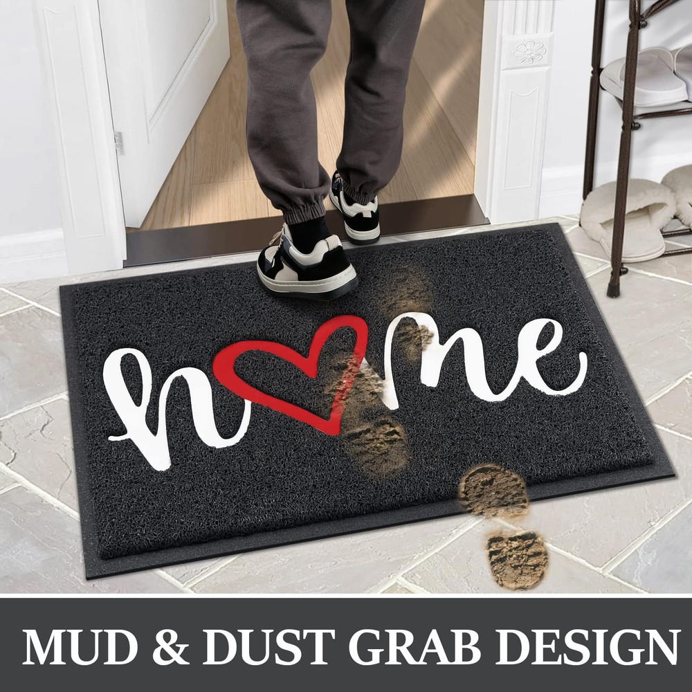 Home Door Mat Welcome Mats Outdoor and Indoor, Heavy-Duty Low-Profile Non-Slip Front Welcome Mat Doormat for Home Entrance, Outside Entry, Yard, Floor, Patio door mat welcome mats outdoor front indoor doormat floor for home entrance rugs entryway outside entry doormats with rubber backing washable waterproof water absorbent garage snow backed patio utility thin inside absorbing house shoe inside high traffic porch 【ABSORBS DIRT】Special dirt & mud grab design efficiently traps dirt, dust, mud, sand, snow from outside to keep your home floor clean. The rubber border stops water to keep your floor dry to prevent slipping. 【EASY TO CLEAN】Shake it outside and most dirt will fall off of the mat. Sweep or vacuum mat to quickly and easily deep clean the mat. Rinse the mat with hose to remove stubborn dirt and air dry to keep the mat looking new. 【ENVIRONMENTALLY FRIENDLY】The home door mat is made of premium polypropylene fabric, natural rubber border and recycled PVC material. Odor-free. 【OPTIONAL SIZES】There are 3 sizes available. 30"x17.5" & 32"x20" & 35"x24". And this one is 30"x17.5". The doormats are suitable for most spots in your home, such as front door, yard, home entrance, patio, balcony, garages, stairs, kitchen, etc. 【SWEET HOME DECO】Embossed “home” pattern specially designed for home welcome doormats. Welcoming message will greet you and your family everyday back home. The pattern won’t fade or fall off after washing.