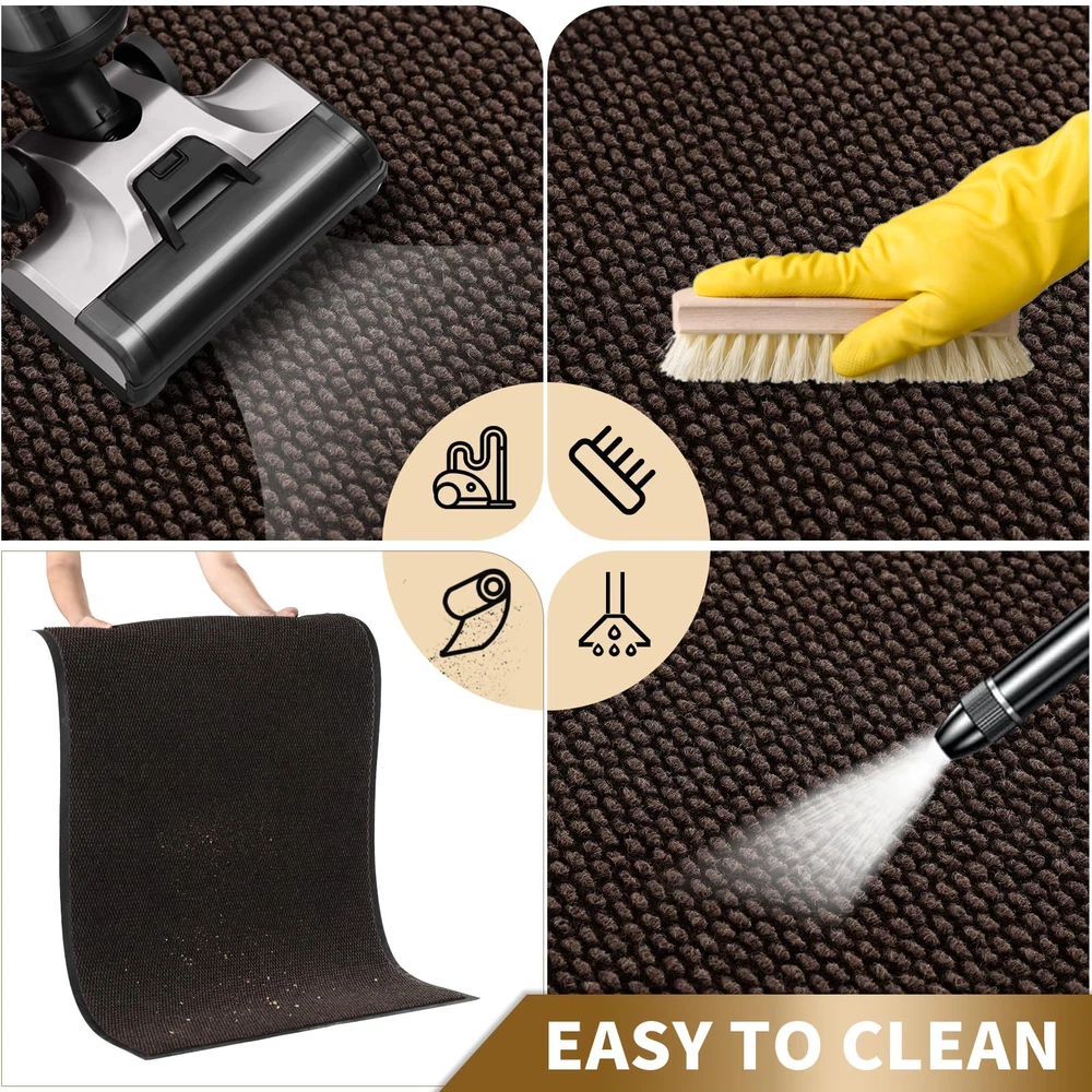 【NON-SLIP RUBBER BACKING】:inside door mat outside entrance, 0.20 inch slim design, can slide under most doorways without snagging rolls.The indoor mat is made of high quality natural rubber backing with higher tensile strength and tear resistance, less odor than synthetic rubber, preventing you from slipping in and out and keeping you safe.At the same time, the rubber backing prevents water and mud from seeping into the floor, effectively protecting your interior floor. 【Easy to Clean】:exterior door mat, Just use a vacuum cleaner, or sweep with a broom, or tap the backing and shake the doormat. For more in-depth cleaning, use a washing machine or garden hose to rinse the floor mat, then hang it in a ventilated place to air dry it or use a dryer. 【Stain & Fade Resistant】:The surface of this outside matt front door all weather is made of high-quality polyester, unique Hot-melt Planting Production Process, which is designed to be sturdy, strong and flexible. The doormat in outside can withstand a variety of weather and seasonal changes, whether it is sunny, rainy or snowy. 【Capture Dirt and Moisture】:shoe mat adopts classic square grid deep groove design, forming a detention dam extending in all directions, helping to capture dirt, dust, gravel, mud, sand, grass or other messy debris and prevent them from entering Indoor; The surface of floor mat beautifully woven polyester fabric absorbs moisture, and the borderless design allows the doormat to keep water from pooling on rainy or snowy days, keeping your home dry and clean. 【Wide Use】:versatile dirt trapper door mat for house are stylish and practical, suitable for indoor use to keep the floors of homes, living spaces, lobbies and offices clean, or outdoor use in front doors, sidewalks, terraces, garages, barns, driveways and many others busy areas; Heavy and sturdy materials, soft and flexible;Simple and stylish design complements any decoration.