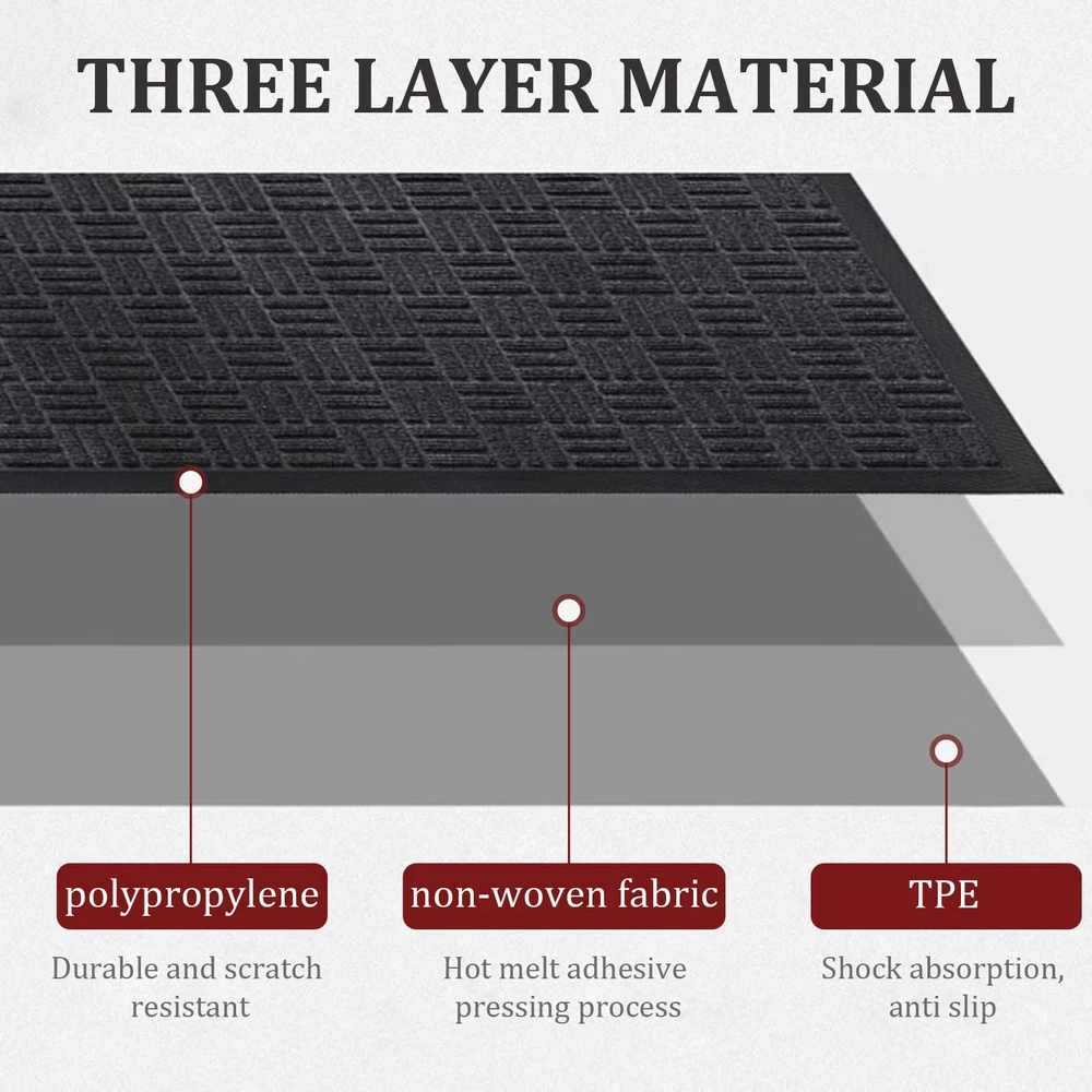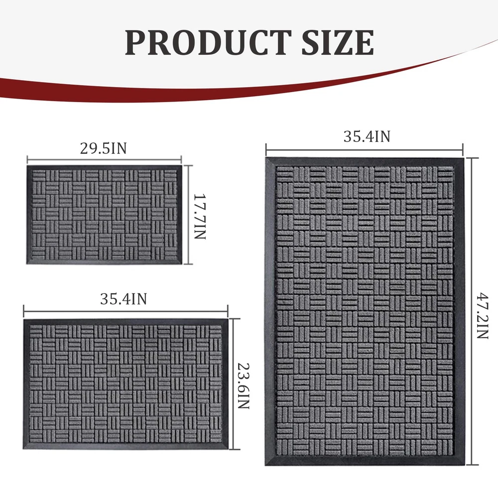 SAFETY AND NON-SLIP: Our rubber floor mats are made of polypropylene crimping, the mat body is thick and flat, and the bottom of the surface is both non-slip, which makes it safe and convenient for daily use. WEAR-RESISTANT AND SCUFF-RESISTANT: The mat adopts high standard production technology requirements, wear-resistant and scuff-resistant, anti-pulling, not easy to collapse when stepped on for a long time, not easy to fall out of the hair. GOOD WATER ABSORBENT, EXCELLENT MATERIAL: The surface of the floor mat is designed with water-absorbent coils, and the new material is safe and odorless, so it can be used for a long time. WIDE RANGE OF USES: mats of moderate thickness, indoor and outdoor can be used, multiple sizes to choose from, the color is resistant to dirt, four seasons, not easy to move, not easy to get stuck in the doorway. TIPS FOR USE: Cleaning is very convenient, vacuum cleaner, shake dust, below 30 ° rinse can be, do not recommend machine washing, should not be exposed to the sun.