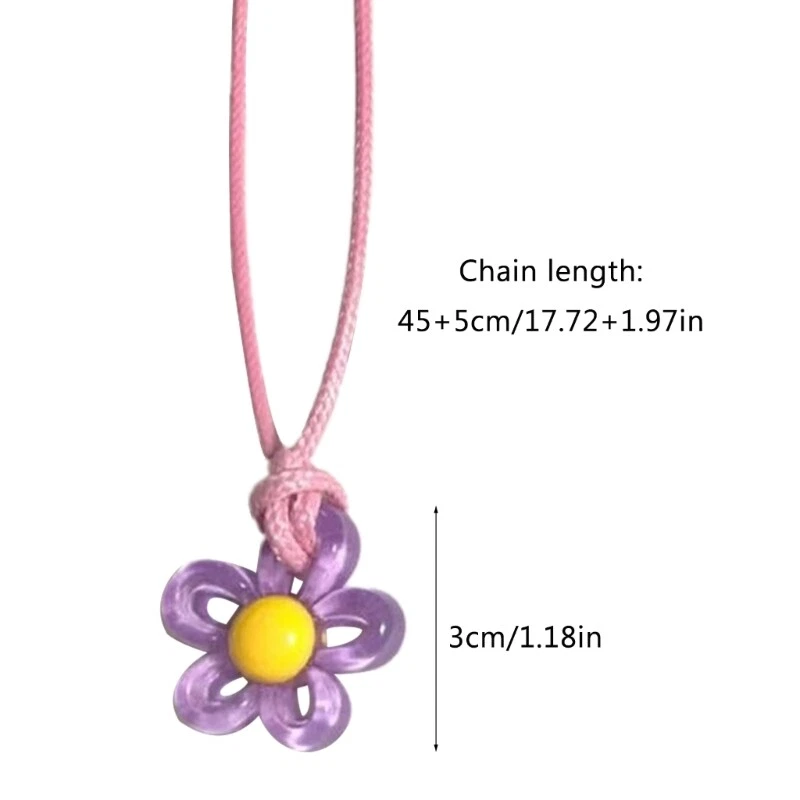 Dopamine Hollow Flower Pendant Choker Pu Chain Necklace Vacation Jewelry Women Features: Show your with our dopamine colorful flower necklace, a must have accessory for fashion forward individuals. Crafted with a combination of pu cord and acrylic, this necklace exudes a unique charm that is sure to catch everyone's attention. Designed for women who appreciate the beauty of nature and love to express their individuality through accessories. Whether you're attending a casual gathering or a special occasion, this necklace adds a touch of elegance and sophistication to any outfit. your vibrant personality and let this colorful flower necklace be a reflection of your inners beauty. Specifications: PU Rope+ Acrylic Size:Approx.45+5cm/17.72+1.97" Flower:Approx.3cm/1.18" Package Includes: 1 Piece Necklace note: Please allow 1-2cm errors due to manual measurement,Please make sure that you do not mind before you order. Due to the difference between different monitors, the picture may not reflect the actual color of the item.