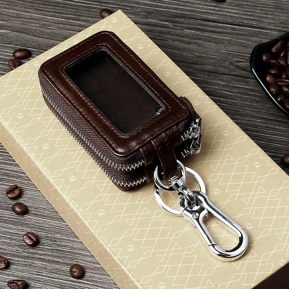 Just got this leather key holder and I’m obsessed! The genuine leather feels so soft and high-end, plus it’s sturdy enough to last. Love the double-layer design—one side keeps my car key secure behind a clear window (no need to unzip to unlock my car!), and the other fits cards or cash. Perfect size, not bulky at all, and the zipper works smoothly. No more searching for my keys at the bottom of my bag. A total game-changer for staying organized—worth every penny!
