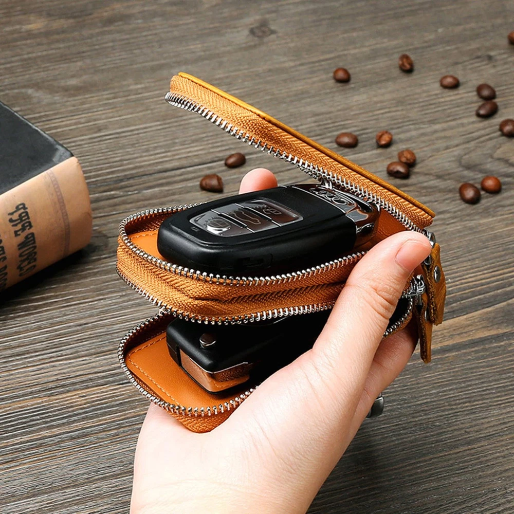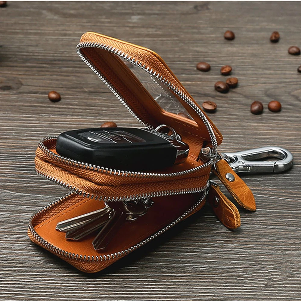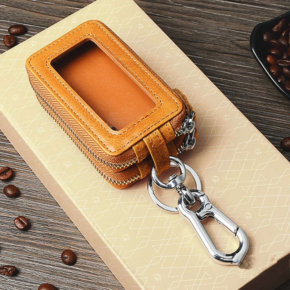 This key holder is a game-changer! The genuine leather feels luxurious and durable, while the double-layer design keeps everything organized. I love the clear window—no more fumbling to unlock my car. Perfect size, sturdy zipper, and it looks sleek. Highly recommend for anyone who wants to protect their keys in style!