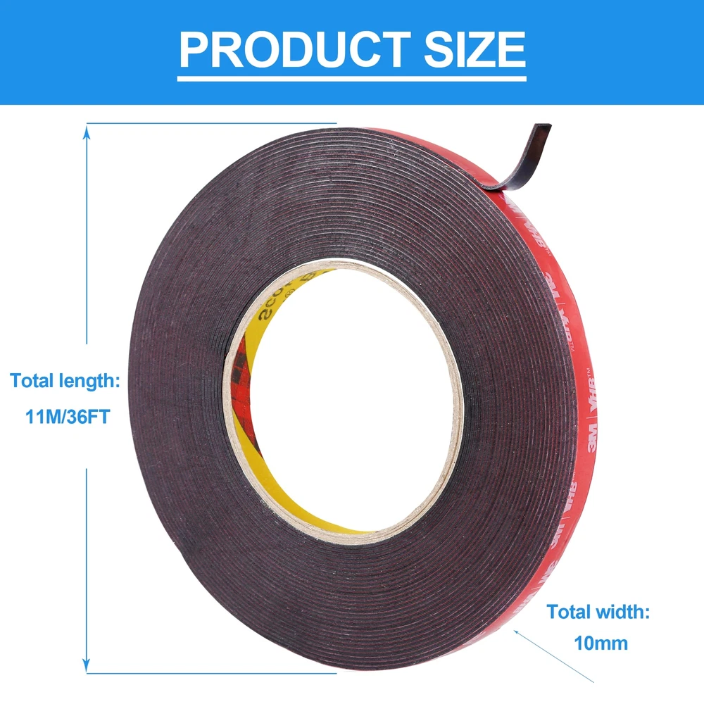 【High quality heavy duty double sided tape】- Proven Reliability from VHB Mounting Tapes. Total 72 Ft/22M, 0.4 Inch/10mm Width,Thickness:0.04Inch/1.1mm. With strength of 90 pounds per inch (longitudinal). High strength and durability. The stickiness will gradually increase over time and display perfectly after 24 hours. 【Waterproof Foam Tape】- with strong resistance to moisture, humidity, and other extreme temperatures, makes it suitable for both indoor and outdoor use. It uses sealed foam to isolate water vapor, good for kitchen and bathroom. 【Flexible And Extensibility】 Simple peel, No gluing, No heating, No screwing, and No wall damage. foam tape can be extended to suit your needs. 【Easy Installation】– This foam tape is easy to install, just peel off the tape and stick it to the surface of the object. And it is easy to reposition when it’s not fully compressed and repositioning will not influence adhesion durability, it bonds quickly and securely when it’s fully compressed. 【STRONG DOUBLE STICK TAPE】 - bonds to a wide variety of smooth and clean surfaces such as glass, metal, plastic, tile, wood, marble and more! Not suggested for wallpaper, fabrics, textured walls, brick, and other rough or non-stick surfaces.