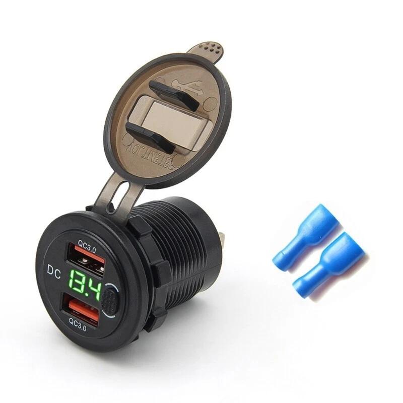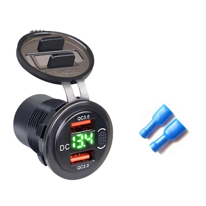 Double USB Car Socket with Real Time For Quick Power Features: fast charging with our double QC3.0 car socket, delivering up to 36W of power to simultaneously charges two devices, significantly reducing charging time. Designed with a built in voltmeter and materials, this USB fast ensures vehicle by levels and is for outdoor use, offering reliable performances in any weather condition. Featuring a user friendly independent and multiple protection mechanisms against overcurrent, overvoltage, and short circuits, this high temperature enhances your driving while safeguarding your devices. Input 12V-24VOutput Double QC3.0Operating temperature -40℃, maximumly 80℃Instructions+''to the positive poles''-''to the negative poles'' Product features: Flame retardant, high temperature resistance, corrosion resistance, durability and deformation resistance.Output 5V3A/9V2A/12V1.5A Specifications: Color:Redness LED/Green LED/Blue LED Component:PC+ABS Product installation: the installation position of the car to open the hole or keep the installation position. Disassemble the board, install the car and tighten the nut to the positive and negative poles of the car and fix the position of the car Package Includes: 1 Set Double USB Car Socket note: 1.Please allow 1-2cm errors due to manual measurement, make sure that you donot mind befores you order. 2.Due to the differences between different monitors, the picture may not reflect the actual coloring of the item. 3. The will display by connecting to the