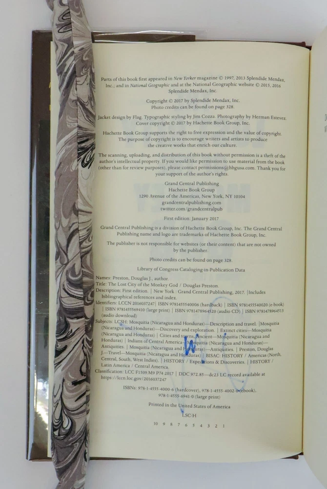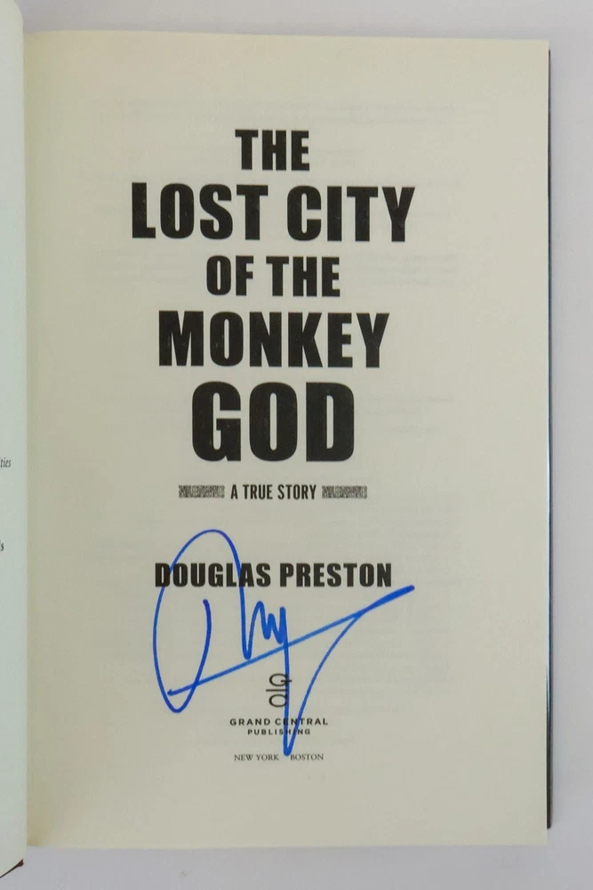 THE LOST CITY OF THE MONKEY GOD [Signed] Author: Preston, Douglas Title: THE LOST CITY OF THE MONKEY GOD [Signed] Publication: New York: Grand Central Publishing, 2017 Edition: First Edition, First Printing Description: Octavo, 326 pages. In Very Good condition with a Very Good condition dust jacket. Pictorial green spine with yellow and grey text. Dust jacket protected with a mylar covering, price uncut '$28.00'. Dust Jacket shows mild wear on head and tail edges of spine. Text block is clear. Colored photos between p.152 and p.153. Contains loose photo within measuring 7x5 in., signed by Douglas Preston, dated Feb 24, 2015. Signed by Douglas Preston on title page. Shelved in hallway. Seller ID: 1384143 Subject: Travel, Exploration, & Geography, World History Welcome to the eBay store of Second Story Books! DC's Oldest Rare and Used Bookstore, Second Story Books operates two open shops in the Washington D.C. metropolitan area. We have an extensive internet presence and provide accredited appraisals member ASA. This listing was created by Bibliopolis.