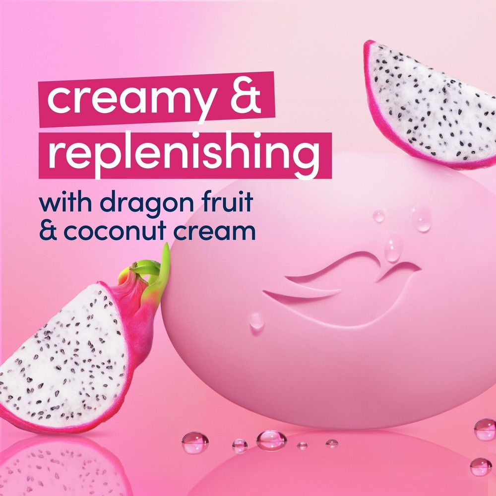 About this item Product details Dove Bar Soap Deep Nourishment Dragonfruit for Women Calm Replenished Skin, 15 oz 4 Count. This Dove Beauty Bar offers an indulgent & replenishing experience. Unlike ordinary bar soap, the Beauty Bar is made with moisturizing cream to deeply nourish skin and prevent dryness. This cleansing bar is uniquely created with plant-based cleanser for skin care that maintains pH balance and the natural skin barrier. Made with Dragon Fruit & Coconut Cream scent, this gentle skin cleanser is multi-purpose: gently washing away dirt and oil while moisturizing your skin. It is gentle enough for face, hands, and body use, allowing it as a facial cleanser and body soap bar. Treat yourself to the ultimate in skincare and experience the difference with this Dove Dragon Fruit Beauty Bar. For adult use. Dove Bar Soap Deep Nourishment Dragonfruit for Women Calm Replenished Skin, 15 oz 4 Count This Dove Beauty Bar offers an indulgent & replenishing experience. Unlike ordinary bar soap, the Beauty Bar is made with moisturizing cream to deeply nourish skin and prevent dryness. This cleansing bar is uniquely created with plant-based cleanser for skin care that maintains pH balance and the natural skin barrier. Made with Dragon Fruit & Coconut Cream scent, this gentle skin cleanser is multi-purpose: gently washing away dirt and oil while moisturizing your skin. It is gentle enough for face, hands, and body use, allowing it as a facial cleanser and body soap bar. Treat yourself to the ultimate in skincare and experience the difference with this Dove Dragon Fruit Beauty Bar. LOCK IN MOISTURE: Formulated with moisturizing cream, this Beauty Bar and gentle skin cleanser leaves skin instantly soft and smooth with lasting nourishment EFFECTIVE CLEANSER: Gently wash away dirt and germs, for use every day on body, face, and hands. This Dove Beauty Bar creates luxurious lather and won’t dry your skin like ordinary bar soaps No.1 DERMATOLOGIST RECOMMENDED: Formulated with moisturizing cream, Dove moisturizing Beauty Bar and gentle skin cleanser leaves skin instantly soft and smooth with lasting nourishment VERSATILE CLEANSER: The unique formulation for effective skin care can be enjoyed by the entire family as this all-in-one cleanser nourishes your face, body, and hands for beautiful skin THOUGHTFULLY MADE: This Beauty Bar is Certified Cruelty-Free by PETA and sulfate free cleansers, so you can feel good about switching from ordinary bar soap to Dove Beauty Bar CARE WITH YOUR CLEANSER: Our mission is to help the next generation of women develop a positive relationship with the way they look, helping them raise their self-esteem. For adult use.