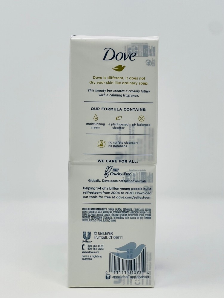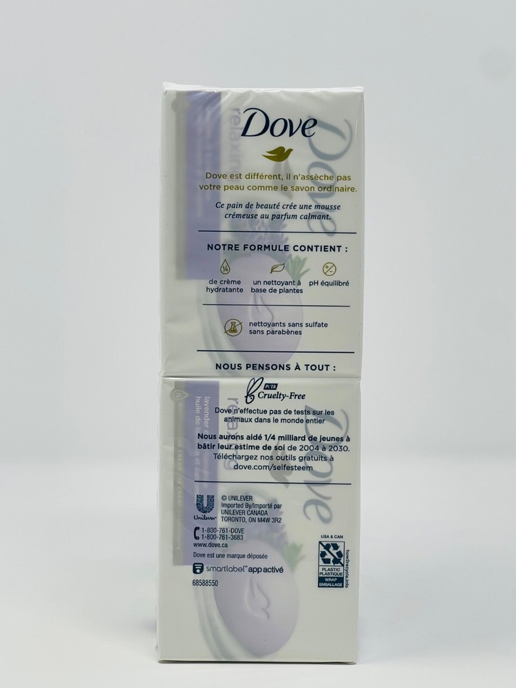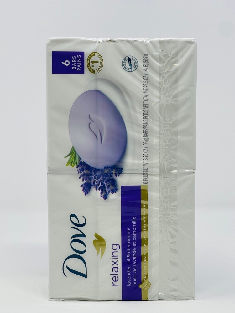 Dove Relaxing Lavender Oil & Chamomile Moisturizing Cream 6 Bars 3.75 OZ./ 106g All Items come from a smoke free / pet free environment. All items are 100% authentic / genuine from the manufacture. We do not sell any fake, knockoffs, imitation or fraudulent product. Feedback: We Strive for every purchase to be five-star rated. Please let us know how we can make yours a five-star rated one too!Our goal is to make every customer 100% satisfied with their order. When you receive your order take a minute to leave us positive feedback at eBay. Please do not simply leave a neutral/negative feedback if you have an issue with an item. If you are not satisfied, please let us know before leaving feedback. Please send us a message through eBay and let us know how we can earn your satisfaction! Please know that your positive feedback and 5 star rating on eBay are extremely important to us. The five-star rating system that eBay instituted is also important to the continued success of our business. When we receive positive feedback from you we will automatically leave positive feedback for you. Payment: Paypal is the preferred form of payment. It is the safest form for both the seller and the buyer.Payment must be made within 5 business days. After 5 days ebay will automatically open an unpaid item case.If you need more time to make a payment please just let us know,we are happy to work with you! Shipping & Handling: 1 Business day handling time. Packages shipped Monday through Friday. One Day Shipping is available, please ask for it before paying. Combine shipping: We do combine shipping on multiple items purchased. We will try our best to save you as much as possible. Ebay’s procedures for combined shipping: Add all the items that you would like by clicking "ADD TO CART” for each item. Once you have added all the desired items to your cart, press the "REQUEST TOTAL FROM SELLER" tab at the top of the cart on the right side. Next press "COMMIT TO BUY & SAVE". We will adjust the shipping prices and send you an invoice. International Buyers / International Shipping We ship worldwide. Please Note:Import duties, taxes, and charges are not included in the item price or shipping cost. These charges are the buyer's responsibility. Please check with your country's customs office to determine what these additional costs will be prior to bidding or buying. Please note that international packages can sometimes be held up in customs which may cause delays in receiving your item. Once the parcel is delivered to the post office, we have no control over any delays that may occur. eBay's estimated time of arrive does not include the time your order may take at customs and sometimes that can take up to 30-45 days. Returns- Satisfaction Guaranteed! ! If you are unsatisfied with any part of you purchase please let us know and we will do what it takes to make you a happy customer!Returns are accepted within 14 days of receiving your item.Only unused, unopened items with be accepted.Buyer is responsible for return shipping.Item must be returned in the same condition as it was received.Refund will be made via Paypal as soon as the item is received. Contact Us: Please Contact Us If You Have Any Questions or Concerns.You can reach our customer service thru the eBay messaging system by clicking on contact seller.We try our very best to answer all questions within 24 hours, except for weekends and Holidays which will be answered on our next business day.If you can't find a specific item for sale, contact us and we might be able to get it for you! Thank you so much for shopping with us !!!