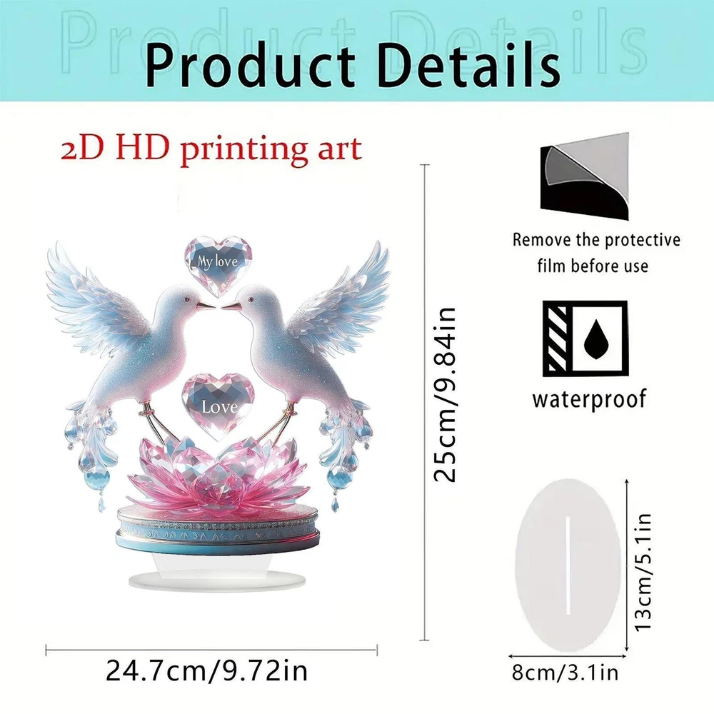 Store Home | Home & Garden | Musical Istruments & Gear | Toys & Hobbies | Sporting Goods | Health & Beauty | Consumer Electronics Doves Heart Acrylic Sign Valentine's Day Decoration for Bedroom Cabinet Cafe Description: 【Unique Design】: Delicate 2D flat couple doves and heart pattern acrylic sign Valentine's Day decoration, romantic and elegant, attractive and beautiful, is a nice addition to home decoration 【Valentine's Day Gift】: The love white pigeon Valentine's Day tabletop decoration is a nice gift choice for Valentine's Day, adding a romantic and elegant atmosphere 【Premium Material】: The decorative plaque is made of premium acrylic material, waterproof, clear printing, wear resistant, not easy to deform, sturdy and ensures a long time to use 【Home Decoration】: Delicate desktop ornament sign with a detachable base, is suitable for putting on the table, desk, shelf, office, bedroom, living room, nightstand, etc 【Wide Applications】: Not only is a Valentine's Day gift, but also suitable for engagements, anniversaries, weddings, Christmas, Thanksgiving Day, birthdays, etc. Note: Remove the protective film before use Specification: Material: acrylic Size Chart: 24.7 cm x 25 cm/9.72 inch x 9.84 inch Package Includes: 1 Acrylic Sign Note: Please allow slightly errors 1-2cm differences due to manual measurement. Payment Shipping Returns If you are bidding or ordering more than one item, the items will be combined into one order automatically thus you can pay altogether. If you want not to combine, please buy one and immediately pay one separately. Please pay what you win in 7 days. Unpaid Dispute will be automatically open if payment is not received after 7 days. If you pay the bill after received unpaid dispute, please email us to close the unpaid dispute. Because the unpaid dispute will not be closed automatically, and we may ignore it. The buyer is responsible for any applicable import duties and local taxes. Please verify with your customs before making your purchase. Please verify your address during checkout. We are not responsible for any wrong or undeliverable addresses. We are committed to give you the best customer service possible. If for any reason you are unsatisfied with a purchase, please contact us and we'll assist you with a prompt solution. Please let us work on the issues. We'd like to settle any problem in a friendly manner. Please do not open a case on eBay or PayPal, or leave any negative or neutral feedbacks directly! We always reply to messages within 2 business days (off-duty at weekend). Due to the difference of time zone between Hong Kong and your location, sometimes the answer will be delayed. If you do not get a response from us after 2 business days, please check your junk or spam mailbox. Unsatisfied product can be returned within 30 days from the delivery date . We can offer a full refund or exchange, but we are not responsible for return shipping cost. Please contact us to get a RMA number before sending out your return. Feedback: 1. Since your feedback is very important to our business's development, we sincerely invite you to leave positive feedback with four 5-Detailed Selling Rating (DSR) to us basing on your satisfaction with our commodity and service. It's just take you 1 minute. 2. Unfortunately, If you are planning to give us a neutral/negative feedback because of your bad buying experience with us, please contact us at any time so as to clear up your discontent and resolve the problem. Featured Products People always bought together with