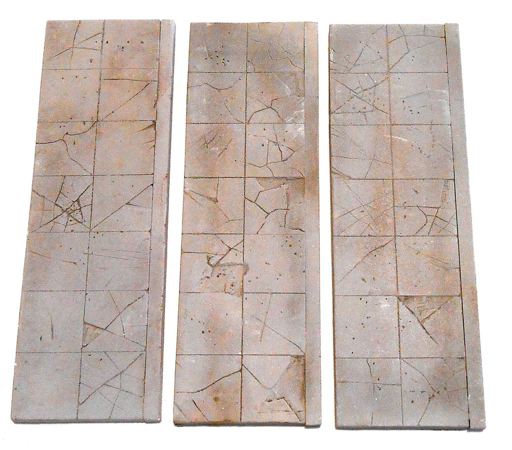 Special! Buy 2 sets and we'll throw in a third set at no extra charge! 12' for the price of 8'! Simply buy 2 sets & we'll send 3 sets, no special code. These are terrible looking in the best sort of way! You get six hydrocal plaster castings 7" long + four corners, enough to do 4'. 2 1/4th" wide. Each is richly detailed with cracks, crevices, & weathering. Unpainted but will include painting instructions. Very easy to work with, cuts with a razor saw. Combined shipping too! Cheers!