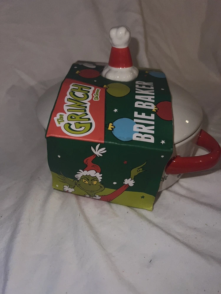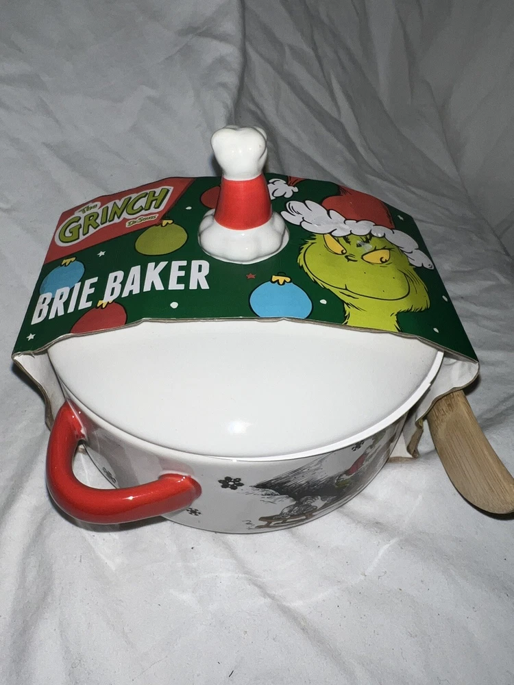 This collectible ceramic baking dish features the iconic character of The Grinch from Dr. Seuss' beloved book and TV show. The dish comes with a wooden spoon, perfect for stirring up delicious treats. The colorful design showcases the playful spirit of the franchise, making it a great addition to any collection. Crafted with care by Grinch Enterprises, this baking dish is sure to bring joy to any fan of Dr. Seuss. It's perfect for baking and serving your favorite holiday treats, or for display as a cherished piece of animation merchandise. Don't miss out on this unique and fun piece of Grinch history.
