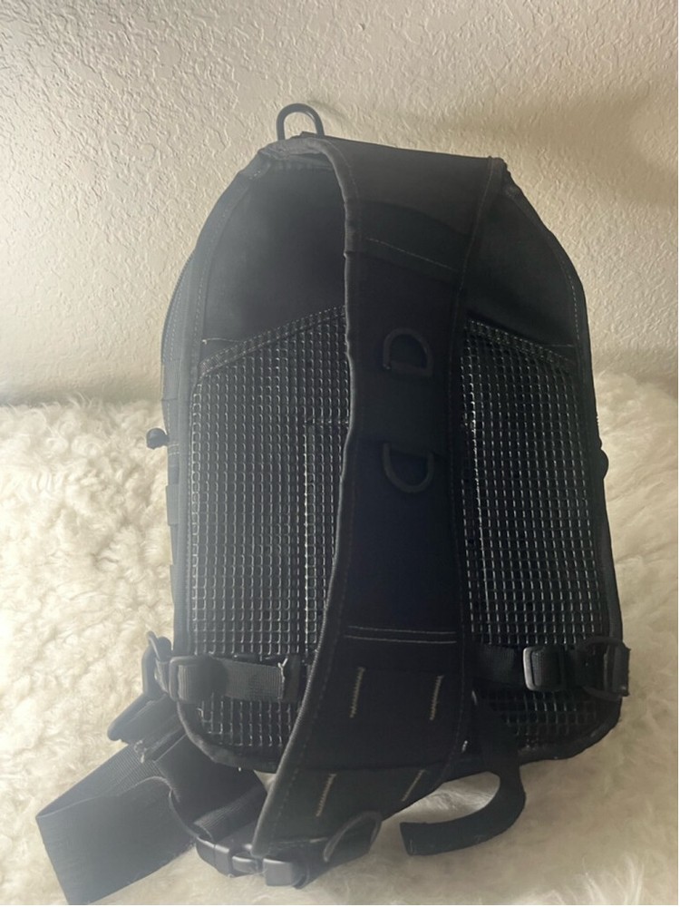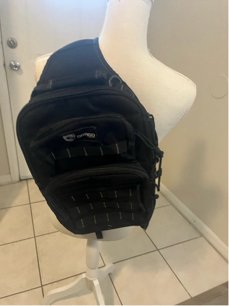 Drago Gear Sling Bag Backpack Tactical Bag for Gear 17” Laptop Bag Sling strap configuration with breathable padding and a quick release buckle. Comfortably fits up to 17 inch laptop computer. Internal 4-channel elastic organizer. ID card window. Water bladder compatible. Y-compression strap. Concealed-carry compartment.