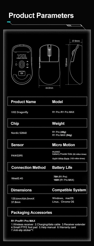 Dragonfly R1 E-sports Mouse PAW3395 Lightweight Ergonomic 2.4G Wireless Mouse