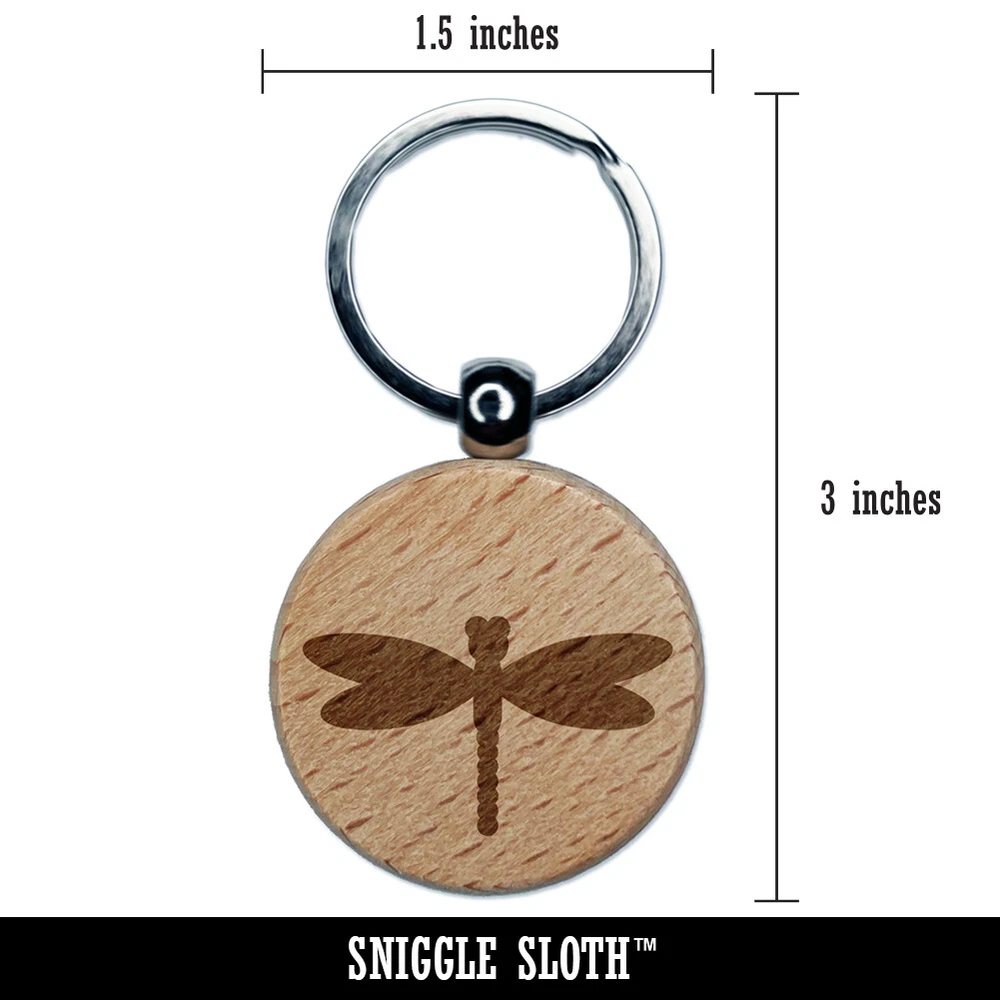 Dragonfly Solid Engraved Wood Round Keychain Tag Charm
