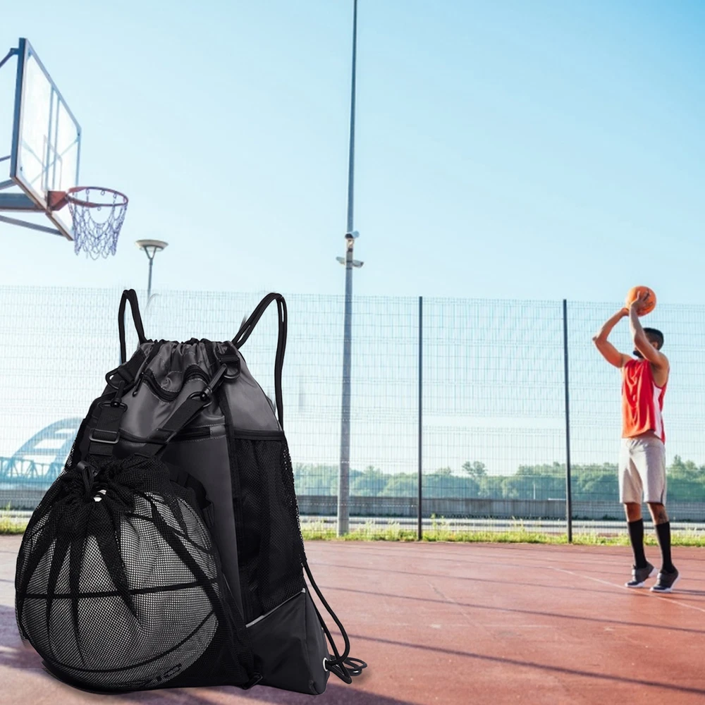 Description: Our drawstring basketball backpack is made of high-quality nylon material, which is waterproof, durable, strong, and wear-resistant. It can be used for outdoor activities, including gym, yoga, hiking, camping, etc. Specification: Product name: Drawstring Waterproof Basketball Backpack Product color: black Product weight: about 0.35kg Product material: polyester Season of use: all seasons Product occasion: shopping, leisure, travel Packing List: 1*multi-functional backpack Notes: 1. Due to the different display and lighting effects, the actual color of the product may be slightly different from the color shown in the picture. 2. Due to manual measurement, please allow a measurement deviation of 1-3cm.