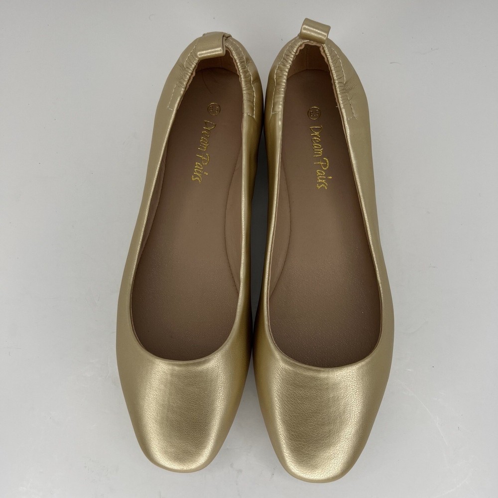 Elevate your slipper game with these stunning Dream Pairs Sole Elle ballet slipper shoes. The glistening gold color and solid pattern make them a chic addition to any outfit. The almond toe shape and slip-on closure provide both comfort and convenience, while the flat heel style and rubber outsole material ensure durability and stability. These women's slipper shoes by Dream Pairs feature synthetic upper and lining materials, with a standard shoe width and synthetic insole material for added comfort. Perfect for any season, these slipper shoes are suitable for winter, summer, fall, and spring. Add a touch of metal-themed glamour to your wardrobe with these stylish and versatile ballet slipper shoes. 100% CUSTOMER SATISFACTION IS OUR GOAL! Our items are always carefully examined for condition, measured if necessary, and photographed in a climate controlled and smoke-free environment. We make every attempt to accurately describe and clearly picture the items we have for sale. Please, ALWAYS view all of the photos. We value your business and our goal is your complete satisfaction. FAST SHIPPING All items are packaged with care and shipped out the same or next business day via USPS, FEDEX, or UPS with tracking numbers so you are always informed. RETURNS We offer a 30-day return policy. All items must be unused and unopened in the condition in which they were received, with original packaging, and all accessories included for return. REVIEWS - CUSTOMER SATISFACTION - COMMUNICATION We aim to make you happy. After you receive your shipment, please leave a positive review . If you have concerns or questions about your order, please contact us so we can resolve the issue. We will do our best to make you satisfied. THANK YOU FOR YOUR BUSINESS!