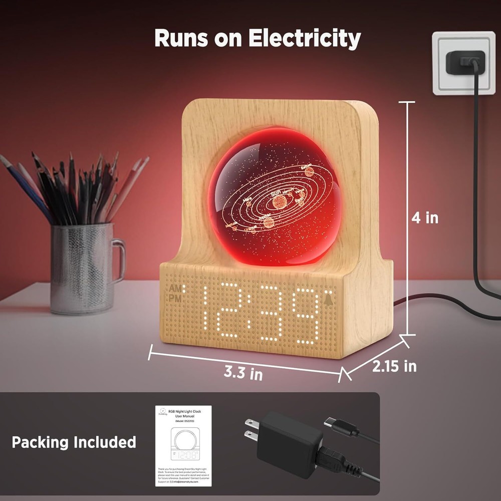 Free eBay listing template designed by dewiso.com DreamSky Space Alarm Clock for Kids Teens, Small Digital Clock with RGB Night Light for Bedroom, Colorful Crystal Ball Decor for Living Room Office, Dimmer, Gifts for Boys Girls Women (Wood Grain) FREE AND FAST SHIPPING! About this item ๐๐๐ฌ๐ญ๐ก๐๐ญ๐ข๐ ๐๐จ๐ฆ๐ฉ๐๐๐ญ ๐๐ฅ๐๐ซ๐ฆ ๐๐ฅ๐จ๐๐ค ๐ฐ๐ข๐ญ๐ก ๐๐๐๐ฎ๐ญ๐ข๐๐ฎ๐ฅ ๐๐ ๐๐จ๐ฅ๐๐ซ ๐๐ฒ๐ฌ๐ญ๐๐ฆ ๐๐ซ๐ฒ๐ฌ๐ญ๐๐ฅ ๐๐๐ฅ๐ฅ: the small digital clock comes with unique design, combing modern desk clock and exquisite 3D solar system ball, making a practical and eye-catching bedside clock, adding charming and decorative astronomy allure to your bedroom. The solar system ball is embedded into the electric clock but still rotatable and won't fall out easily, safe for kids, boys and girls. ๐๐ข๐ฆ๐ฆ๐๐๐ฅ๐ ๐๐๐ ๐๐ข๐ ๐ก๐ญ ๐๐ข๐ ๐ก๐ญ ๐ฐ๐ข๐ญ๐ก ๐ ๐ข๐ฑ๐๐ ๐๐จ๐ฅ๐จ๐ซ: The clear planets and orbits carefully crafted within the crystal globe, catches the dynamic colorful night light beautifully, with the choice to keep a stationary color as wish and the 5 levels brightness control, showcases an elegant, romantic and peaceful sphere ornament whether it's on a nightstand table, a living room desk or an office desk, adding a touch of cosmos charm to any room decor. ๐ ๐๐๐ฏ๐๐ฅ๐ฌ ๐๐ข๐ฌ๐ฉ๐ฅ๐๐ฒ ๐๐ซ๐ข๐ ๐ก๐ญ๐ง๐๐ฌ๐ฌ ๐๐ข๐ฆ๐ฆ๐๐ซ: with intuitive button control, the night light allarm clock is super easy to set. Time display brightness is 5 levels and OFF adjustable, fits various needs, be it a low light bedroom or bright day. Time format is standard time and military time switchable. ๐๐จ๐ฎ๐ ๐๐ฅ๐๐ซ๐ฆ ๐๐ฅ๐จ๐๐ค ๐๐จ๐ซ ๐๐๐๐ฏ๐ฒ ๐๐ฅ๐๐๐ฉ๐๐ซ๐ฌ ๐ฐ๐ข๐ญ๐ก ๐ ๐๐๐ฏ๐๐ฅ ๐๐จ๐ฅ๐ฎ๐ฆ๐ ๐๐จ๐ง๐ญ๐ซ๐จ๐ฅ: the bedroom alarm clock features loud beeping alarm for deep sleepers and teens, ensures to wake you up on time and never miss an important appointment, alarm volume is 5 level adjustable which is also suitable for light sleepers. ๐๐ฅ๐ฎ๐ ๐๐ง ๐๐ฅ๐๐ซ๐ฆ ๐๐ฅ๐จ๐๐ค ๐ฐ๐ข๐ญ๐ก ๐๐๐ฆ๐จ๐ซ๐ฒ ๐๐๐ญ๐ญ๐๐ซ๐ฒ (๐๐จ๐ญ ๐๐ฎ๐ฉ๐ฉ๐ฅ๐ข๐๐): this kids alarm clock boys runs on electronic power and 2 AAA batteries (not includedd) are used to store the clock setting in case of power cut. Batteries can't be used to power the led clock. Type C AC adapter is included. ๐ ๐๐ก๐๐ซ๐ฆ๐ข๐ง๐ ๐๐๐๐จ๐ซ๐๐ญ๐ข๐จ๐ง ๐๐ง๐ ๐๐๐๐๐ฅ ๐๐ข๐๐ญ: the sleek and durable design of the small alarm clock, the elegant aesthetic appeal for visual delight, the fantastic combination of the time and the starry, with the colorful rgb night light, makes the digital desk clock a special and luxury decor to bedroom, living room, kids room and any space while also serves as a standout heartwarming gift for girls, boys, teens, kids, women, seniors, adults and astronomy enthusiasts of all ages on birthday, Christmas, Thanksgiving Day and etc. Product We offer a 30-Day Return Policy on items which you are not completely satisfied with. You have the option for a full-refund or an exchange of the item. No returns are available on items shipped outside of the US . Shipping We offer Free Shipping to the US and ship within 2 business days of payment, usually sooner. We use UPS express shipping. That's why your products are usually delivered within 3 days . Contact We try our very best to make sure every customer is completely satisfied. If there's a problem , message us! We're happy to help. 24/7 live chat available.