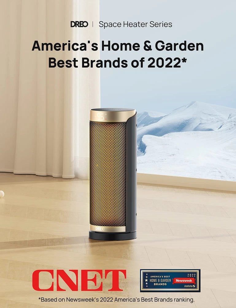 Dreo Space Heater, 1500W PTC Ceramic Heaters for Indoor Use with Remote, 70° Oscillation, 1-12H Timer, Electric Heaters with Thermostat, Fast and Safe Portable Heater for Office, Bedroom, Large Room ETL-Certified Safety: Made of V0 flame-retardant materials with multiple safety features including built-in smart tip-over protection, overheat protection, 12-hour timer, 24-hour automatic power off without interaction, V0 flame retardant 2-prong plug, and sturdy 6ft long flat power cord. Safe and worry-free all-day use. Safety Reminder: Please do not use with an extension cord. Only plug directly into the wall outlet. Fast Indoor Ceramic Heater: Powerful 1500W PTC ceramic heating allows this space heater to heat up in seconds, suitable for warming up spaces in the home including bedrooms, basements, garages, living rooms, and can also be used in offices, dorms, hot yoga studios, etc. Heating Coverage:200 sq.ft. Quiet Heating: 40dB - almost as quiet as a library. The fan wheel uses oblique airflow technology, which effectively reduces wind noise and makes the room heater 12% quieter than traditional electric heaters. Calm airflow lets you sleep soundly and work undisturbed during the cold winter Uniform Heating: Experience enhanced comfort in large rooms with the exclusive trackball system, engineered for smooth and whisper-quiet oscillation. The 70° wide-angle oscillation, with a lifespan of over 750,000 cycles, boosts heating coverage by 20%, which helps distribute the warm air more evenly towards the room's corners Energy Efficiency: Save on energy bills and live more sustainably. With a built-in precise temperature sensor, the smart ECO mode adjusts the working mode independently (with a low of 900W and high of 1500W to efficiently maintain your desired indoor temperature) based on the ambient temperature Usage Comfort: The touchscreen is placed on top of the heater for easier reach, and the remote provides full access from up to 26 feet away. The 16-inch compact design makes our space heater a real space saver that is easy to move around with its hidden handle. Cord Lenth: 6 ft / 1.8 m