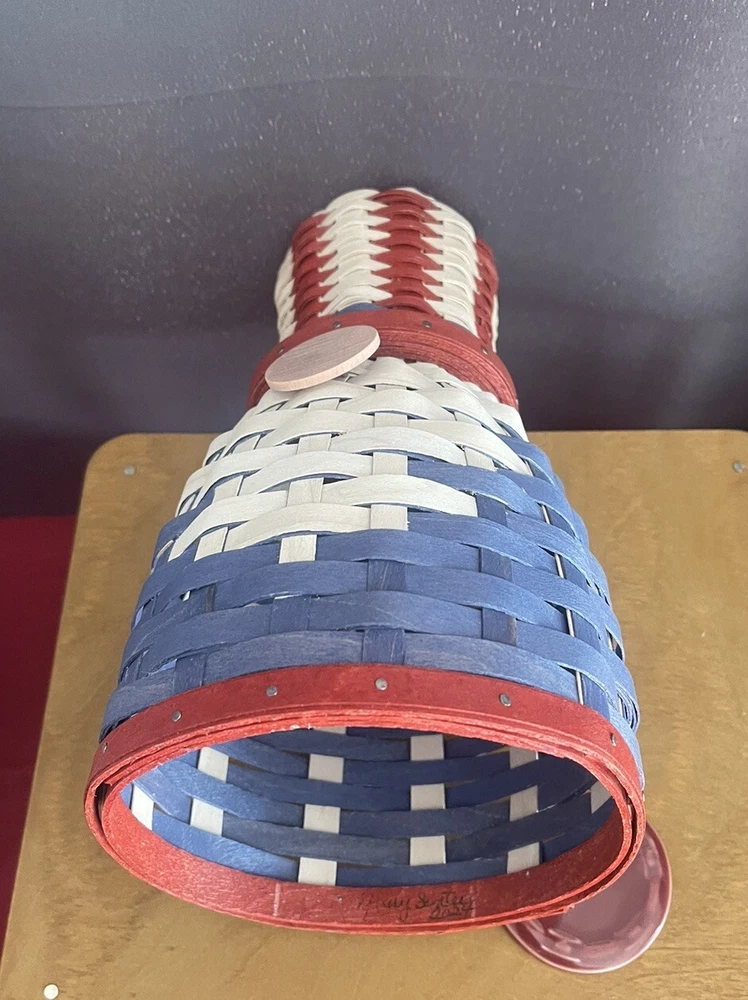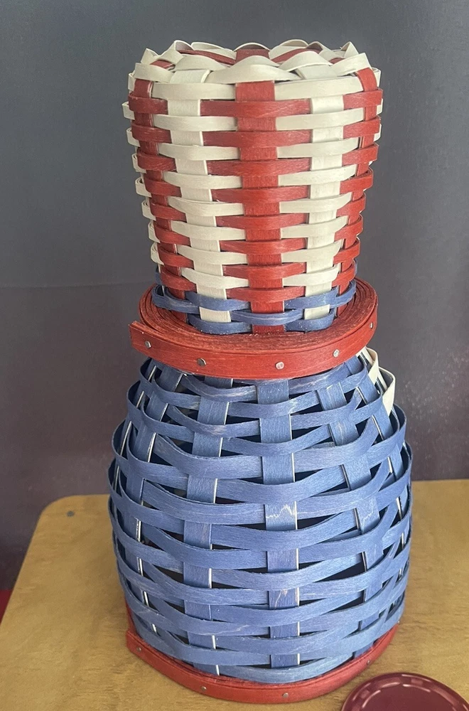 Celebrating the 2024 election victory ! Made in USA. In the very same place with the same weavers that weave Longaberger baskets Red white blue. In Trumps image 11” tall.