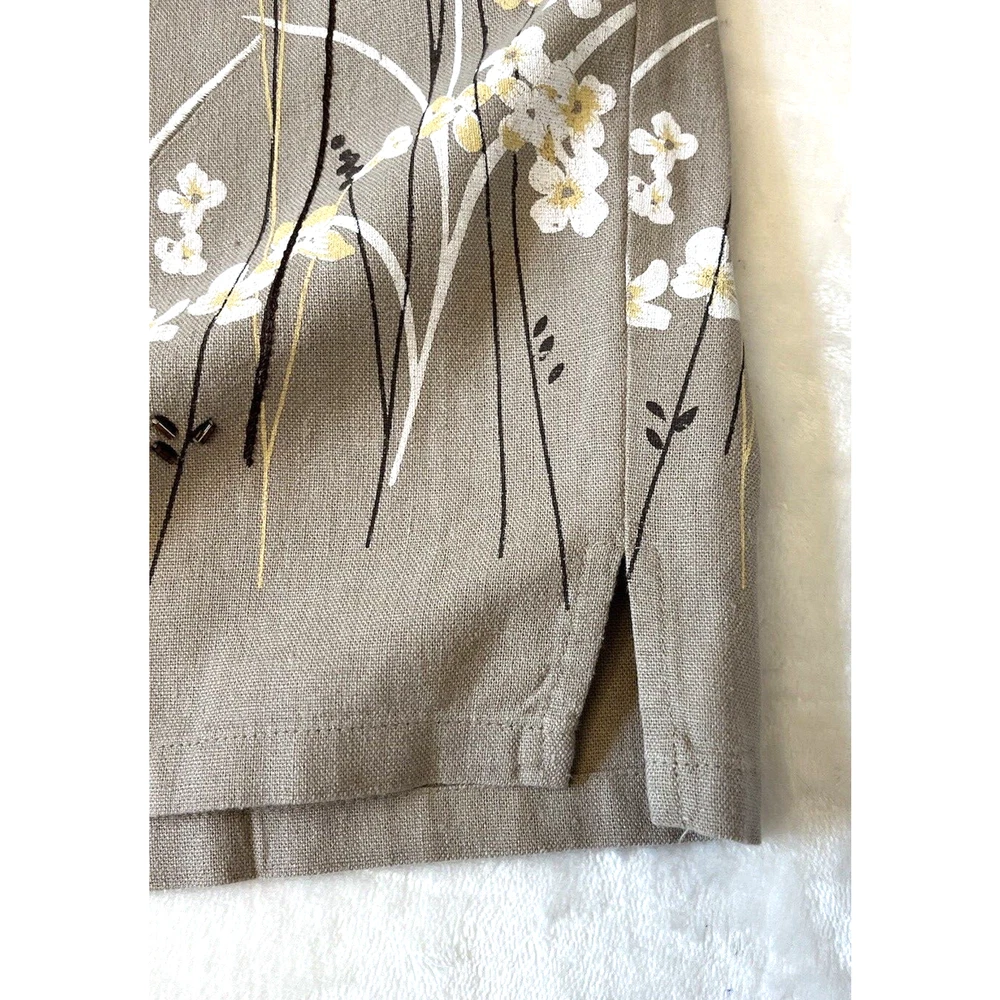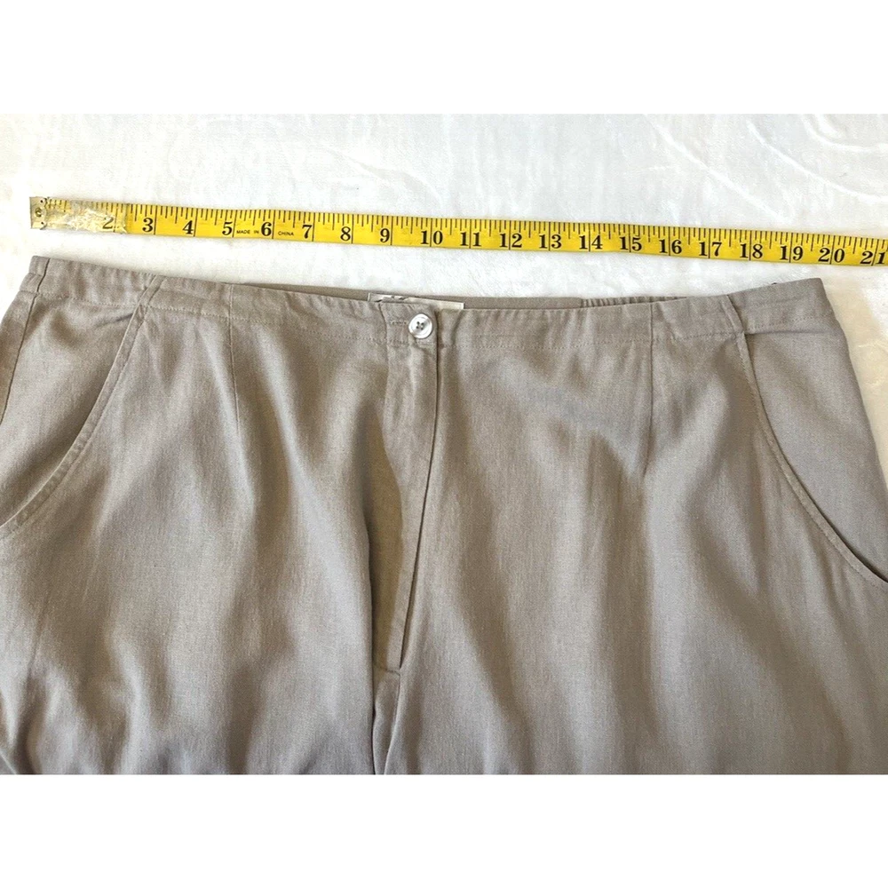 Elevate your wardrobe with these stylish Dressbarn women's khaki linen blend pants. These pants feature a beautiful floral design, a flat front, and a high rise for a flattering fit. The pull-on closure ensures comfort and ease of wear, while the cropped style with a 24.5 inch inseam and embroidered accents give these pants a chic and trendy look. Made from a blend of rayon and linen, these pants are perfect for summer, fall, and spring. With no mention of the item's condition, you can be assured that these pants are in great shape and ready to be added to your collection. Don't miss out on the opportunity to add these versatile and stylish pants to your wardrobe today.
