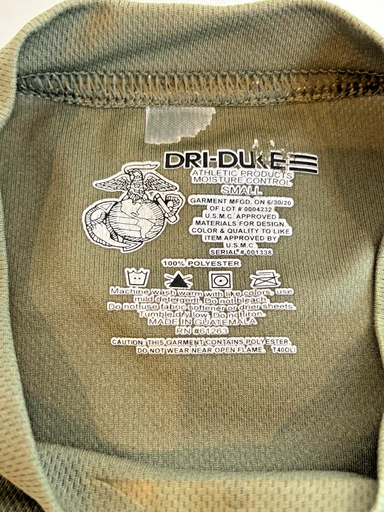 Dri Duke USMC Approved Moisture Control - Men’s Small Short Sleeve Shirt Green. Shirt is in great pre-owned condition-no flaws. Please see pictures for measurements. Features: • Chest: 39 in • Length: 27.5 in Measurements: - Previous washings may change the sizing written on the tag. - Please refer to the photos above for all measurements. - Please compare our measurements to that of one of your favorite garments. - Please note, item measurements are approximate. - Colors may differ slightly in shade from photos to actual item due variances caused by photography lighting and monitors. All items are bagged and sealed after being photographed, then stored in a smoke free environment to ensure the item is exactly the same as when photographed. We always carefully package and ship ASAP. Feel free to contact us with any questions. All pre-owned items are washed per eBay standards and policies. We greatly appreciate your business! Please remember to leave positive feedback if you are happy with your purchase! Thanks for looking!