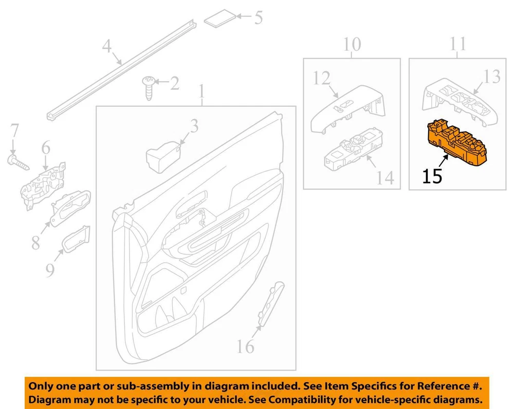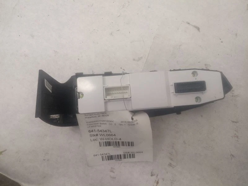 Universal Fitment: No Conditions & Options: LF.MASTER Manufacturer Part Number: 93571A9300 To Control: Window, Wing Mirror Donor VIN: KNDMA5C11G6120364 PartOut ID: A-53248531 VIN #: KNDMA5C11G6120364 PartNumber: 641 Warranty: 90 Day GTIN: Does not apply Designation: Used Placement on Vehicle: Door, Front, Left Stock #: WL0664 Brand: Kia Vintage Part: Yes Mileage: 96000 Make: KIA Type: Switch Assembly Model: SEDONA Reference Number: 15 Year: 2016 OE/OEM Part Number: 93571A9300 Placement: Driver/Left Inventory ID: 2169845 Interchange Part Number: 641-54347L Genuine OEM: Yes Manufacturer Warranty: 3 Months