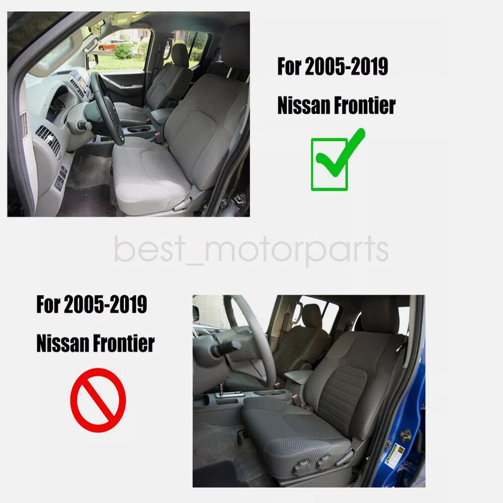 Driver Side Bottom Seat Cover Cloth Dark Gray For 2005-2019 Nissan Frontier New Description: Driver Bottom Seat Cover Cloth For 2005-2019 Nissan Frontier “Dark Gray” This is a replacement of your original seat cushions cover Fits heated & power seats as well. This seat cover is available in two colors: Dark Gray and Gray . If you are unsure about the color of the original seat cover, please contact us before placing an order, Features: Soft,Easy To Clean Comfortable, Practical,Durable And Breathable Provide A Comfortable Ride, Ease Driving Fatigue Reduce Seat Wear, Increase The Beauty Of Automotive Interiors Fitment: 2005-2019 Nissan Frontier 2005-2019 Nissan Frontier - S, SV, XE, LE, SE, Single Cab 2005-2019 Nissan Frontier - S, SV, XE, LE, SE, Extended Cab 2005-2019 Nissan Frontier - S, SV, XE, LE, SE, Crew Cab Fits Heated and Non-heated Seats. (Heated and Powered seats will not be affected with the change to a new cover because the wiring for the heating elements are connected to the cushion not the actual seat.) Tools Required: Snips, Flat Head Screw Driver, Phillips Screw Driver, Socket, Wrench & Drill. More Information: Actual Replacement Cover, Not A Slip On or Pullover, You will Remove The Old Cover & Then Install the New Cover. About Installation: Installation Takes About 20-30 Minutes Installation Instructions: Average Installation Time: Takes About 20-30 Minutes Self-Install Tip: Self Install Requires Appropriate Tools (See Below). Self-Install Tools: Flat Head Screw , Phillips Screw , Socket, Wrench & Drill Note: Make sure this item fits your car before purchasing. Toensure compatibility please match the part number or send us your VIN. Communication is the best way to solve the problem. If you have any problems after purchasing, please contact us in time. Due to the light and screen setting difference, the item's color may be slightly different from the pictures. Package included: 1x Passenger Seat Cover ,Foam pad and frame are not included Notice: Please don't open cases or return requests without contacting me. If you have any questions about quality, shipping or other problems, please contact me first via eBay message. I will give you a satisfy solution. General Policies: Payment: Shipping policy: Returns: About us: General Policies: Dear customer,if you have any questions,you can contact us,we will provide the best service for you. Payment: Please purchase and pay for the item through the eBay,only accpected the paypal payment. Shipping policy: The item will be shipped within 24 hours on payment received except the holidays.(except weekends & official holidays). You can log on to eBay to check your logistics tracking number. Please confirm address before purchase, and cannot change address once purchased. If you need to receive the item quickly, please contact us, you can pay the postage to choose other logistics. Returns: Please contact us first when return, exchange and refund is required. Any direct return of purchased items will not be processed. Item must be returned in new condition, as received with all accompanied accessories and literature, including the factory carton. Shipping, handling is not refundable unless item is returned because of defect. About us: Our goal is complete customer satisfaction. We will be very honored to provide you with quality service. If there is an issue with shipping or the item you purchased please contact us via ebay message or call us before opening a case or leaving feedback.We will try our best to resolve any kind of issue. On Nov 18, 2024 at 08:29:04 PST, seller added the following information: