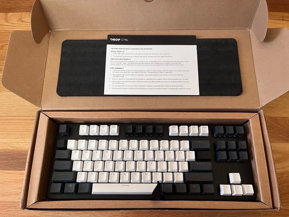 drop ctrl mechanical keyboard box white clicky switches original box and accessories (however the keycap puller is missing)