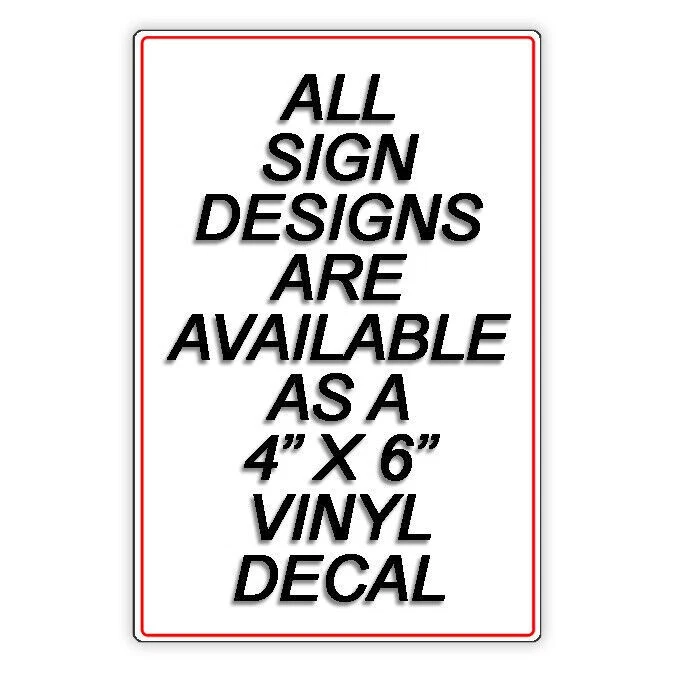 Available As An Aluminum Sign / Magnetic Sign / Vinyl Decal Aluminum Signs Are Available In Five Versions 5" x 7" / 8" x 12" / 12" x 18" Treated With Ultra UV Protection To Prevent Fading Printed directly onto the metal sign Signs do not have stickers, decals, paint or vinyl lettering Won't fade, crack, peel, chip or rust. 5" x 7" (.025 thickness) Signs have square corners, two strips of mounting tape and no holes 8" x 12" (.025 thickness) Signs have rounded corners and are available in TWO OPTIONS AVAILABLE WITH 1/4" MOUNTING HOLES ALSO AVAILABLE WITHOUT MOUNTING HOLES BUT MOUNTING TAPE IS ATTACHED TO THE BACK OF THE SIGN 8" x 12" (.032 thickness) Signs have rounded corners and two 1/4" mounting holes 12" x 18" (.032 thickness) Signs have rounded corners and two 1/4" mounting holes Decals are 4" X 6" Vinyl decals do not have holes Printed with eco-solvent ink guaranteed to last 5 to 7 years Decals are shipped USPS First Class Mail with tracking CUSTOM DESIGN DECALS ALWAYS AVAILABLE Magnetic Signs Offer The Option Of Being Removable You can display the sign on your garage door or front door when you are expecting a delivery and then remove it when no delivery is expected Perfect if you'd prefer not to have a sign mounted permanently Magnetic signs are 7" x 10" or 5" x 7" and have no holes PLEASE CHECK TO MAKE SURE THAT MAGNETS STICK TO THE AREA THAT YOU PLAN TO USE THE MAGNETIC SIGN Some doors are aluminum and the signs may not stick PREMIUM QUALITY Made In The U.S.A. FAST SHIPPING 100% COMPLETE SATISFACTION GUARANTEED Your item will arrive quickly and in perfect condition. If there is anything about the transaction that doesn't meet your expectations, or if your item is damaged in shipping by the post office, Please send us a message and give us the opportunity to address your concern We promise to correct all problems to your complete satisfaction as quickly and easily as possible. EVERYTHING THAT WE SELL IS 100% MANUFACTURED IN THE UNITED STATES SINCE 1998 Thank you for supporting a family owned business Thank You for considering Custom Signs