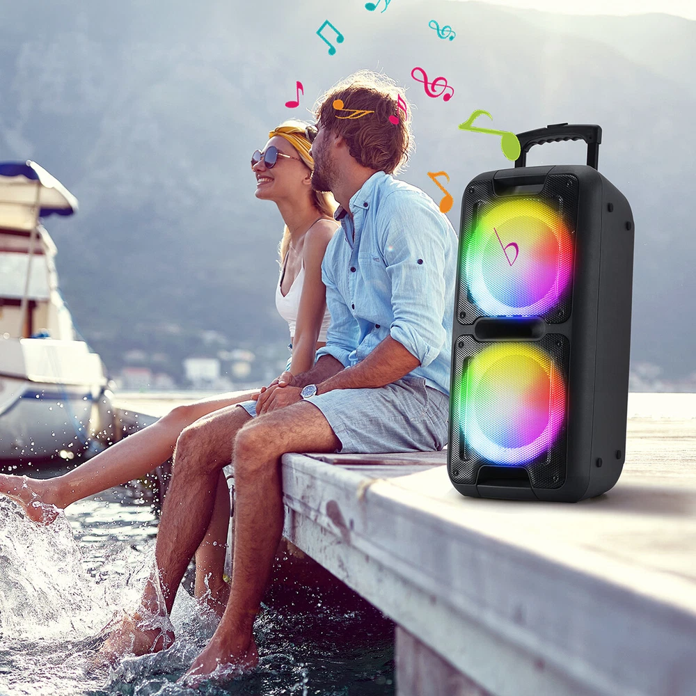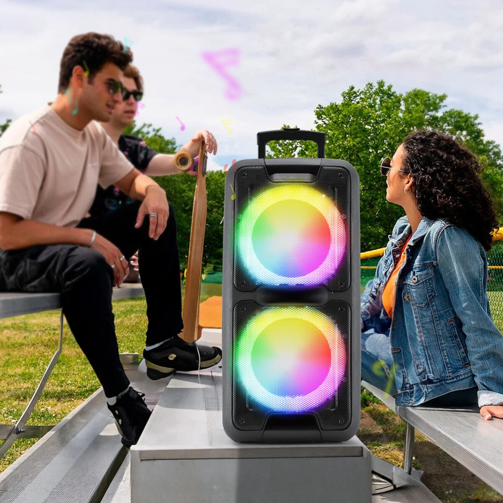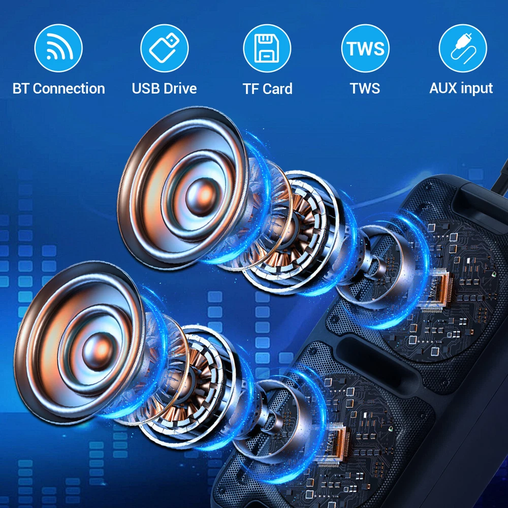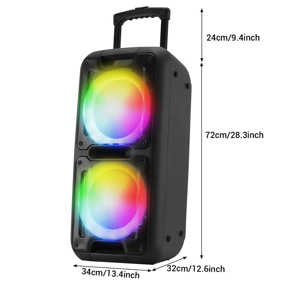 Dual 10" Woofers Bluetooth Rechargeable PA Speaker +Bluetooth +USB/SD/FM/EQ/LED There's plenty of powerful sound coming out of this Bluetooth speaker, but that's only a start in describing how this can make a party. As it plays the music, a spectrum of LED light patterns, ranging from pure white to rainbow, can pulse along to the music, syncing up with every beat.If you have music stored on a USB flash drive, simply plug it into the corresponding port, and you'll be able to easily listen to your favorite playlists. There's also an RCA line-in for connecting to CD players and other devices. With Built in Rechargeable Battery, Trolley Handle and Wheels allows you to take your Party anywhere! Features: ✨ Dynamic LED Neon Lights: Elevate your party atmosphere with vibrant neon LED lighting that syncs to your music, offering an immersive audio-visual experience. ✨ Versatile Connectivity & Playback: Stream your favorite tunes via Bluetooth, USB, SD, or Aux-in. Plus, the built-in MP3 player and two microphone inputs make it ideal for DJ sets and karaoke. ✨ Unmatched Sound Quality: Experience powerful, room-filling audio with the speaker's dual 10" woofers and X-Bass technology, delivering crisp, thunderous sound perfect for parties, outdoor events, and karaoke nights. ✨ Portable Design for Easy Transport: Featuring a trolley design with durable wheels and a retractable handle, the Speaker built for easy mobility, making it perfect for indoor and outdoor use. ✨ Complete Entertainment Package: Comes equipped with a wireless microphone and remote control, allowing you to manage your music and engage your audience from anywhere in the room. Specifications: Color: Black Material: molded PP plastic cabinet Charging time: 5-8 hours Play time: 6 hours (fully charged) Input Voltage: AC 110-240V 50/60Hz Output Power: 100W Battery Capacity: 12V/7A Rechargebale Battery Product Unit Size: 72*34*32cm/28.3*13.4*12.6inch Package Include: 1 X Dual 10in Speaker 1 X Wireless Microphone 1 X Remote Control 1 X 3.5mm to RCA Cable 1 X Power Cable 1 X Manual Payment Delivery details Terms of sales Feedback Contact us Payment Immediate payment is required. Shipping will be arranged within 1 business day once payment is cleared. To uphold a shipping speed, your order will be processed almost immediately. If you change your mind after your payment is confirmed, we will do our best to cancel the order, however, we CANNOT guarantee the cancellation. Delivery details FREE SAME BUSINESS DAY MONDAY- FRIDAY SHIPPING FROM USA. No shipping on Weekends or US Public Holidays. No responsibility for any custom duty. We will ship your order to your Ebay Verified address provided. Please verify your address and make sure that it is your current address before making your payment. Any address change requests after your payment CANNOT be guaranteed. Shipping information will be updated when available. All of our products can be shipped internationally. To confirm the shipping rates to your country please refer to eBay's Shipping Tab above. Any brokerage, customs, and duty fees associated with international shipments are the customer's responsibility and are not included in our shipping fee. A phone number is required for the customs documents. Failure to provide one will result in delays. We do not include an invoice or any advertising materials with our shipments. Terms of sales We stand behind our items and offer 60 days warranty. All items are in new and working condition unless specified otherwise elsewhere in the description. All Returns - defective or otherwise - MUST BE PREAUTHORIZED to guarantee refund or exchange. Please contact us to get an authorization and return address. Buyer agrees to pay for the cost of re-shipment for undeliverable or wrong addresses. Buyer is responsible for Return Postage if return/replacement is not a result of our mistake such as wrong item. Replacement or Refund will be made upon receipt of the returned item. Please include tracking number so we can process ASAP. If you do not wish to wait for a replacement, please repurchase the item. Feedback We strive to provide the best products and services. Your positive feedback 5 stars DSR help us do better. If anything about your transaction did not meet expectations, please CONTACT US and give us the opportunity to make things right. We are always here to help. Contact us Please do not hesitate to CONTACT US . You can message 24/7 on eBay for all questions and inquiries. We will get back to you within one business days at the latest from Monday- Friday.