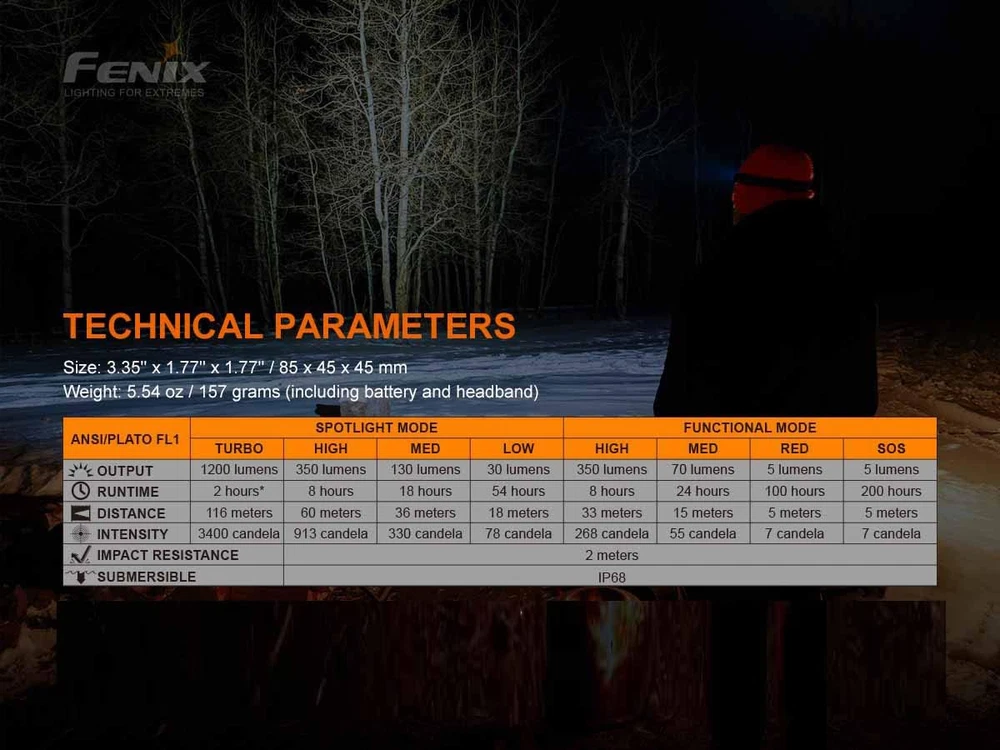 Store New Arrivals Add to Favorite View Feedback Contact Dual Battery Bundle HM60R Headlamp, 1300 Lumen Rechargeable Headlamp with Two ARB-L18 and Lumentac Organizer Description Item model number HM60R+F2600+ORG Light Source Type LED Style sporty & utilitarian" or "modern & minimalist Power Source Battery Powered Battery Cell Composition Lithium Ion Warranty Type Manufacturer Warranty Batteries Included? Yes Special Features Durable,Lightweight,Rechargeable Batteries Required? Yes Product Dimensions 3.35"D x 1.77"W x 1.77"H Material Aluminum Number of Batteries 1 Lithium Ion batteries required. (included) Finish Type HA III Hard Anodized Included Components Charging Cable, Batteries included, Headband Item Package Quantity 1 White Brightness 1200 Lumens Brightness 1300 Lumen Item Weight 5.5 ounces Battery Description Lithium-Ion Runtime 54 hours Special Feature Durable,Lightweight,Rechargeable Part Number HM60R+F2600+ORG Color Black Batteries 1 Lithium Ion batteries required. (included) Voltage 3.6 Volts Recommended Uses For Product Outdoor activities Finish types HA III Hard Anodized BRIGHT MULTIFUNCTIONAL HEADLAMP - The Fenix HM60R emits up to 1300 lumens with an auxiliary red light, ideal for outdoor activities such as jogging, hiking, camping, running. USB-C RECHARGEABLE- Rechargeable via built-in USB-C port and powered by the included battery, the HM60R is capable of running up to 54 hours on the lowest mode. TRIPLE LIGHT SOURCE - Primary spot light for beam penetration, secondary flood light for wide coverage, and auxiliary red light for emergencies. COMFORTABLE AND DURABLE - Comfortable to wear for hours with its highly reflective and breathable headband, Built with aluminum alloy and rated at IP68 waterproof, this headlamp can withstand any harsh environment. Package Contents: HM60R Headlamp, 2x ARB-L18 Rechargeable (one pre-installed, one additional), USB-C Charging Cable, Lumentac Battery Organizer Product Description High Performance Headlamp Triple Output: White, Neutral White, Red The Fenix HM60R headlamp is small, lightweight yet very bright, designed specifically for outdoor activities such as walking, jogging, running, or backpacking. It emits a 1300 lumen max and reaches 126 feet. The combination of floodlight and spotlight provide a wide-angle beam for coverage and focused beam for distance. The light sensor automatically senses your running speed to deliver optimal brightness. When it's time to rest, switch to the red light to preserve the night vision or flashing red to maximize visibility to other runners and vehicles. With the choice of a wide-angle flood light, piercing spot light, and auxiliary red light, the HM60R covers all lighting needs. Highlights 1300 lumen max output 126 yards max throw White, neutral white, red light output Fast USB-C Charging Includes 2x rechargeable batteries 180° tilt adjustment Various Lighting for Various Situations White Light The HM60R headlamp produces a max 1300 lumen white light output that can reach up to 126 yards. The while light is great for wide range illumination. Neutral White The neutral white light provides natural light that reduces eye strain and for up close reading or working. Also ideal for maneuvering in rainy or foggy weather. Red Light The red light is great for preserving night vision, doesn't attract bugs, and warning/signaling. Easy, Handsfree Lighting Rechargeable Battery Includes two rechargeable battery. The HM60R has a ultra-long runtime of 54 hours on low mode. USB-C Rechargeable Unscrew the side to expose the built-in USB-C charging port. Protected from debris and waterproof, quickly recharge the HM60R in only 2 hours. Large Side Switch Press and hold for General Mode. Double click for Functional Mode. Press and hold to switch mode. Tilt Action Easily adjust the beam angle of the HM60R 180 degrees up and down. Help better illuminate your path, prevent dark spots, or get a better light angle where you need it. Specifications LED SST40 White LED, XP-G2 HE Neutral White LED, 2835 Red Light LEDs Max Brightness 1300 lumen Peak Beam Distance 126 yards IP Rating IP68 Dimensions 3.35" x 1.77" x 1.77" Weight 5.54 oz Brightness Turbo General: 1300 lumen - 2 hr High General: 350 lumen - 8 hr | Functional: 350 lumen - 8 hr Med General: 130 lumen - 18 hr | Functional: 70 lumen - 24 hr Low General: 30 lumen - 54 hr Red Functional: 5 lumen - 100 hr Red Flash Functional: 5 lumen - 200 hr ABOUT US We offer the best prices around on high quality products. Our E-store includes media such as books, movies, music and games while offering electronics, toys, sporting apparel, clothing, tools, general home, garden items and more. SHIPPING We are always working hard to ensure your package arrives as soon as possible. Please understand that some factors like weather, high postal traffic, and the performance of shipping companies are outside of our control. We offer free shipping to the lower 48 states and ship within 2 business days of payment, usually sooner. We do not accept P.O. Boxes. Please provide a physical address. For shipping outside of the continental USA, we only use eBay's Global Shipping Program.The item is shipped to KY and then sent to the rest of the world. International customers are responsible for all duties and taxes. Continue to check out in order to calculate costs for shipping the item to your country. Messages regarding eBay's Global Shipping Program MUST be directed at eBay EXCLUSIVELY. RETURNS We offer a 30-Day Return Policy on items which you are not completely satisfied with. You have the option for a full-refund or an exchange of the item. No returns are available on items shipped outside of the USA. PAYMENT We accept PayPal. CONTACT US This page content is yet to come Please ad us to your favorite seller and visit again later Thank You CUSTOMER SATISFACTION We try our very best to make sure every customer is completely satisfied. If there's a problem, message us! We're happy to help. WE ACCEPT Copy