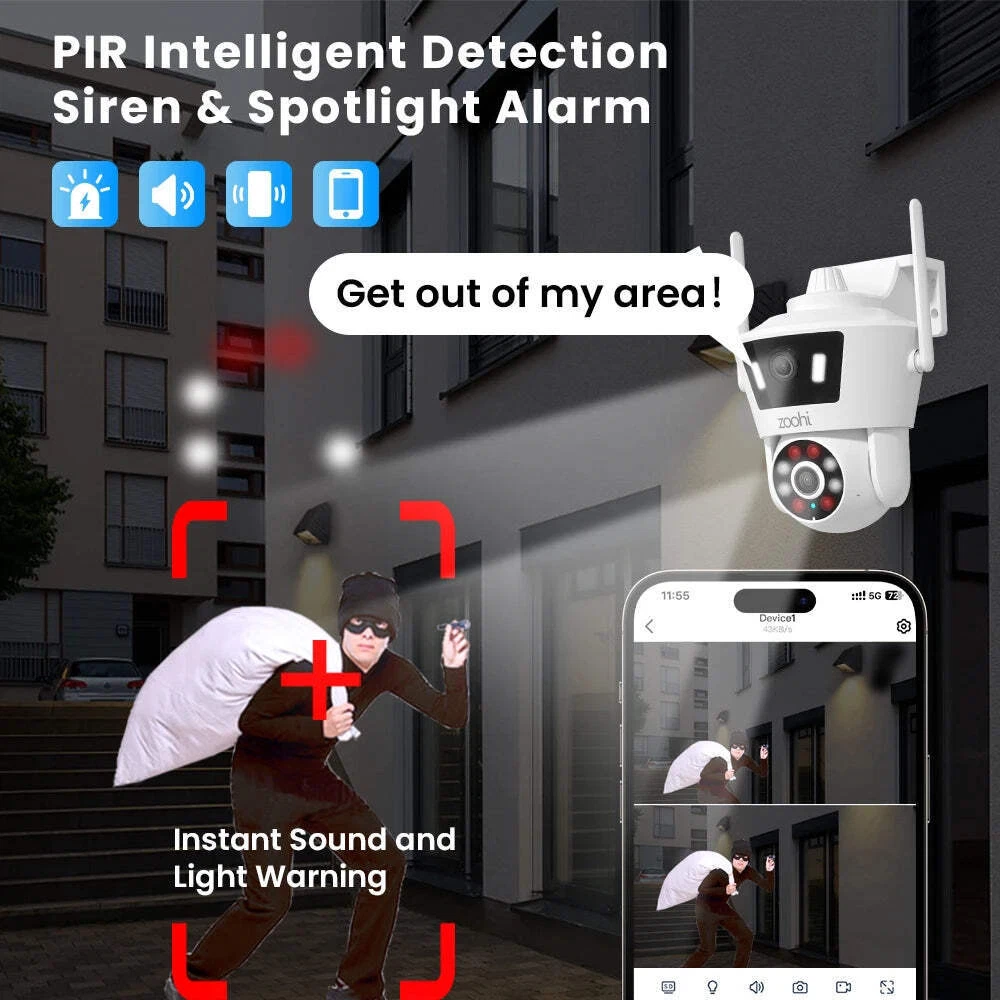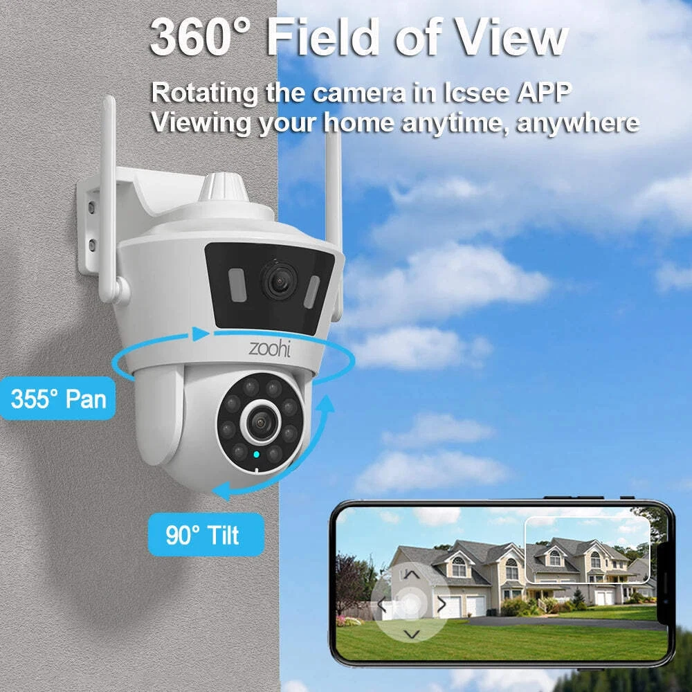 Dual Lens 6MP 2K Security Camera Icsee 2.4G Wireless Wifi Camera PTZ Cameras Col