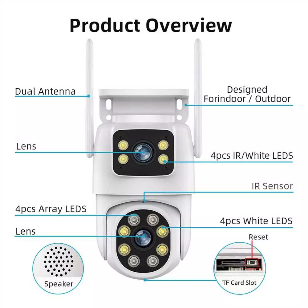 Dual Lens HD 4K WiFi IP Camera Wireless Outdoor CCTV PTZ Home Security IR Cam