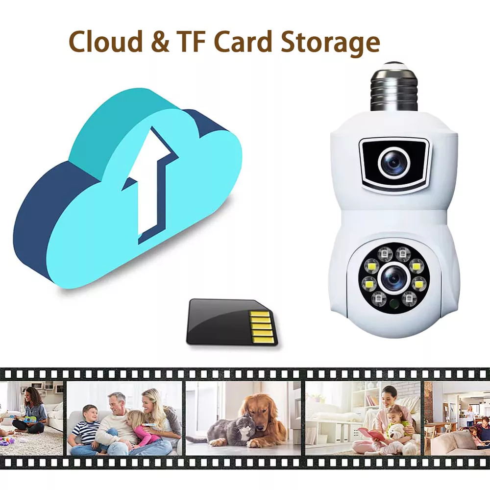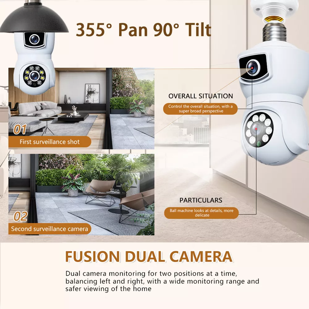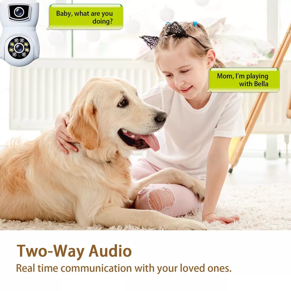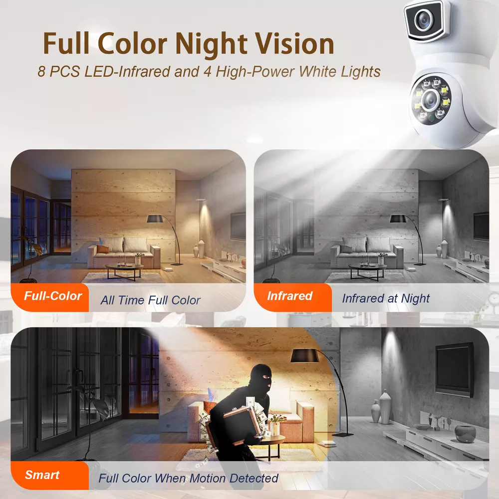 Highlights 1. Dual 1080P Lens high-definition resolution 2. 360 degree view with Phone APP, Pan 355 degreesRotate, Tilt 90 degrees 3. Dual screen ultra clear simultaneous display, wider monitoring angle, and higher image quality. 4. Linkage bullet & Dome Camera, Globally Monitor with fix lens bullet camera, quickly locate and track objects with the pan tilt dome camera 5. Ultra clear playback with 2 screen video, and supports video cloud and TF card dual channel recording storage. The TF card supports a maximum of 128GB. 6. Humanoid algorithm, compatible with humanoid detection, intelligent tracking, and motion detection. 7. Mobile push of alarm information for fast response. It can also be manually tracked through the app, with no missing details. 8. 2 Way Talk, bidirectional noise reduction, and clearer intercom. 9. Remote view with V380Pro Phone App, allowing you to monitor anytime, anywhere, and support multi user remote preview. 10. Full color night vision, intelligent night vision, and remote video switching.
