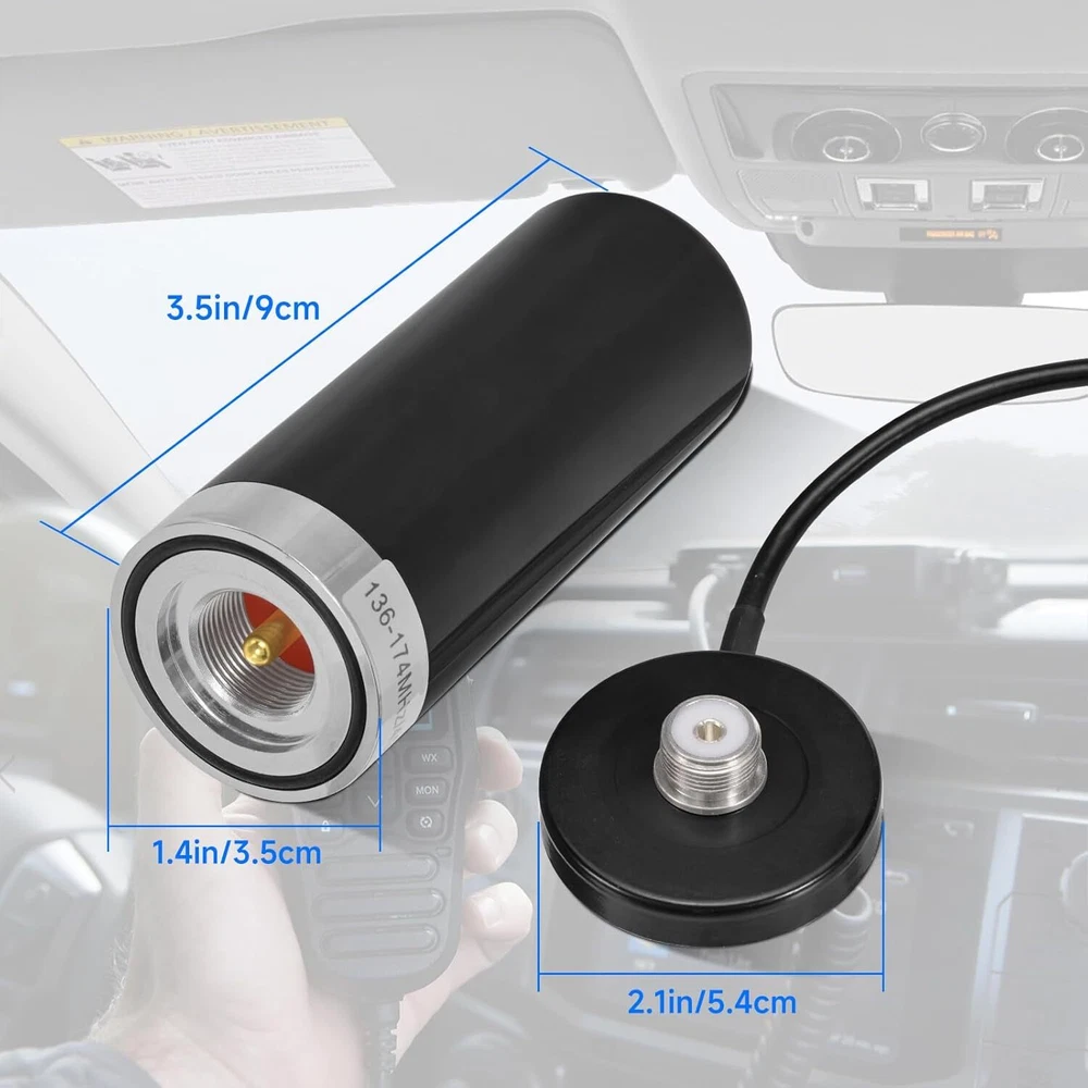 Vehicle Ham Radio Mobile Radio Antenna Dual Band VHF UHF 136-174MHz 400-470MHz, SO239 Mount Magnetic Base Low Profile Antenna, 5M Cable with PL259 Male Connector for Car Truck Amateur Radio Marine VHF Radio Specification Frequency Range: VHF 136-174MHZ; UHF 400-470MHZ Output Gain: 3dB + - 0.5dB Nom. Impedance: 50 ohms Max Power: 50w V.S.W.R: <3.0 : 1 Noise: <2dB Direction: Omni-directional Installation: strong magnet mounting Application: mobile radio, two way Radio, marine VHF radio, handheld ham Radio, GMRS radio Compatible Radio Models (for reference) Baofeng GMRS-50X1 UV-50X3 UV-50X2 UV‐25X4 UV‐25X2 Yaesu FT-7900R FTM-3100R FT-2980R AnyTone AT-5555N AT-588UV AT-6666 AT-D578UV AT-788UV Kenwood V71A, D710G Specifications: Frequency Range: VHF 136-174MHz, UHF 400-470MHz Feature: with Strong Magnetic Base Mount Compatible with: FRS GMRS MURS Radio; Amateur Radio; Vehicle Mobile Radio; Ham Radio; Two Way Radio; Public Radio Scanner; Marine VHF Radio; Compatible with Amateur Mobile Radio, Ham Radio, FRS GMRS Two Way Radio: BTECH, ICOM, Kenwood, Midland, Yaesu, TYT, AnyTone, Radioddity, Cobra, Uniden, President, Galaxy Audio, Pro Trucker, Stryker; VSWR: <2.0; Impedance: 50 ohm; Direction: Omni-directional; Antenna Base Mounting Connector: NMO Mount Connector; Antenna Cable: 5m RG58/U Cable Cable Connector: UHF PL259 Male Connector Net Weight: 458g; Operating Temperature: -20°С ~ +80°С Storage Temperature: -30°С ~ +85°С Package List: 1 x Antenna (As the Picture Shown) Marine VHF Two-Way Radio: Uniden UM380 UM380BK UM385 UM385BK UM415 UM415BK UM435 UM435BK; Cobra MRF45D MRF57B MRF57W MRF77B MRF77W; Standard Horizon Eclipse Series GX1300 GX1400 GX1400GW GX1400GB GX1600 GX1600B GX1800 GX1800GB GX1800GW GX1800B GX1850 GX1850B GX1850GW GX2000B GX6000; ICOM M330 M330G M506 M605; Icom IC-2730A IC-2300H BTECH UV-50X2 UV-25X2 Midland MXT275 Bullet Point: Frequency Range: VHF 136-174MHz, UHF 400-470MHz; Feature: Strong Magnetic Base Mount; Antenna Base Mounting: NMO Mount; Antenna Cable: 5m RG58/U Cable; Cable Connector: UHF PL259 Male Connector; Compatible with Amateur Mobile Radio, Ham Radio, FRS GMRS Two Way Radio: BTECH, ICOM, Kenwood, Midland, Yaesu, TYT, AnyTone, Radioddity, Cobra, Uniden, President, Galaxy Audio, Pro Trucker, Stryker; Compatible with: Marine Boat VHF Radio, Ham Radio, Two Way Radio, Amateur Radio, FRS GMRS MURS Radio, Walkie Talkies; Compatible with Amateur Mobile Radio: BTECH UV-50X2 UV-25X2; ICOM 2300H F6021 A120; Kenwood TM-D710G; Midland MXT275; Yaesu Original FTM-3100R FT-2980R FT-2980; TYT TH-9800 TH-7800; AnyTone AT-5555N AT-588UV AT-6666 AT-D578UV AT-788UV; Radioddity DB25;