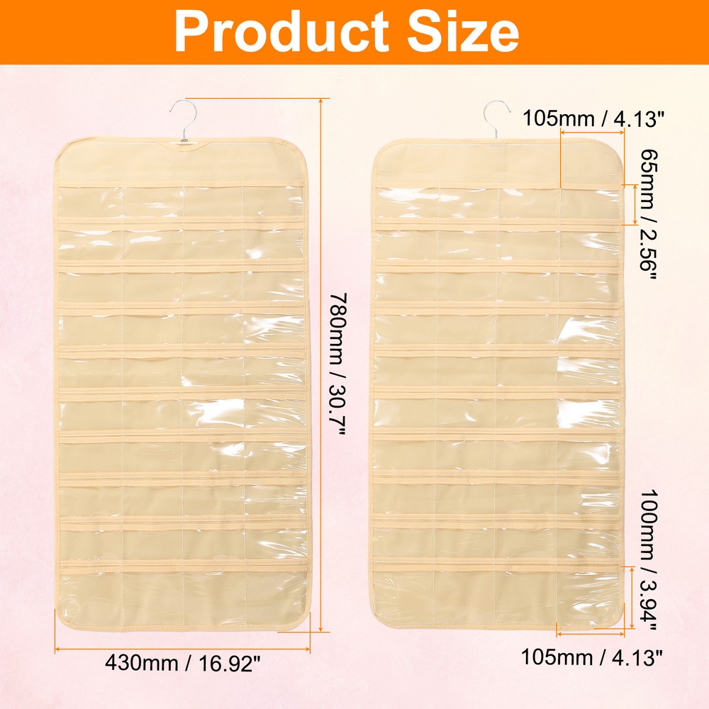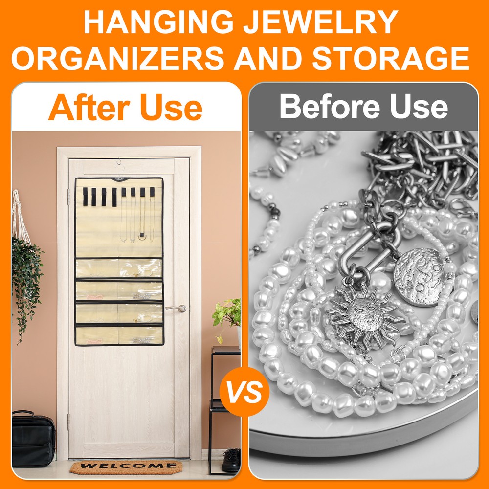 Document Hanging Jewelry Organizers and Storage:The overall size of the jewelry storage bag is 43 x 78 cm / 16.92 x 30.7 inches, with a total of 80 transparent pockets. It is a double-sided design, with 40 small pockets on one side for bracelets, earrings and rings.Easy to Use: Save space, can be hung on the wall, wardrobe, behind the door. Store all jewelry in the same place, so you can pick it up at will.It takes up as little space as a shirt hanging in the closet, saving a lot of space than a jewelry box or jewelry stand.It can be folded or rolled up, making it convenient to carry jewelry on business trips or vacation trips.Protect Jewelry: The compartment design allows for separate storage to reduce dust ingress, protects your jewelry from entanglement, effectively avoids scratches, and prevents oxidation and rust from occurring.In addition, it can also display your beautiful jewelry.Hang Anywhere: With a double-sided design, the jewelry hanger can rotate 360 degrees to any direction you need.Made of durable polyester, PVC materials and sturdy metal hooks, it is sturdy and durable, not easy to break or fade, and can be used for a long time.Multifunctional Jewelry Organizer: It can store and display a large amount of jewelry, and the transparent pocket allows you to easily find jewelry.The wardrobe jewelry hanging storage box has a variety of uses, not only for storing jewelry, but also for nail polish, cosmetics, cards, etc. Dual-sided Hanging Jewelry Organizer with 80 Pockets Beige Hanging Jewelry Organizers and Storage: The overall size of the jewelry storage bag is 43 x 78 cm / 16.92 x 30.7 inches, with a total of 80 transparent pockets. It is a double-sided design, with 40 small pockets on one side for bracelets, earrings and rings. Easy to Use: Save space, can be hung on the wall, wardrobe, behind the door. Store all jewelry in the same place, so you can pick it up at will. It takes up as little space as a shirt hanging in the closet, saving a lot of space than a jewelry box or jewelry stand. It can be folded or rolled up, making it convenient to carry jewelry on business trips or vacation trips. Protect Jewelry: The compartment design allows for separate storage to reduce dust ingress, protects your jewelry from entanglement, effectively avoids scratches, and prevents oxidation and rust from occurring. In addition, it can also display your beautiful jewelry. Hang Anywhere: With a double-sided design, the jewelry hanger can rotate 360 degrees to any direction you need. Made of durable polyester, PVC materials and sturdy metal hooks, it is sturdy and durable, not easy to break or fade, and can be used for a long time. Multifunctional Jewelry Organizer: It can store and display a large amount of jewelry, and the transparent pocket allows you to easily find jewelry. The wardrobe jewelry hanging storage box has a variety of uses, not only for storing jewelry, but also for nail polish, cosmetics, cards, etc. Hot Item Payment 1.We accept eBay payment . 2.Payment must be received within 7 business days of auction closing. Shipping 1.We ship to your eBay or Paypal address. Please make sure your eBay and Paypal address is correct before you pay. 2.Items will be shipped within 1-3 business day when we received payment. 3.Delivery time depends on destination and other factors. Description Policy Dual-sided Hanging Jewelry Organizer with 80 Pockets Beige Hanging Jewelry Organizers and Storage: The overall size of the jewelry storage bag is 43 x 78 cm / 16.92 x 30.7 inches, with a total of 80 transparent pockets. It is a double-sided design, with 40 small pockets on one side for bracelets, earrings and rings. Easy to Use: Save space, can be hung on the wall, wardrobe, behind the door. Store all jewelry in the same place, so you can pick it up at will. It takes up as little space as a shirt hanging in the closet, saving a lot of space than a jewelry box or jewelry stand. It can be folded or rolled up, making it convenient to carry jewelry on business trips or vacation trips. Protect Jewelry: The compartment design allows for separate storage to reduce dust ingress, protects your jewelry from entanglement, effectively avoids scratches, and prevents oxidation and rust from occurring. In addition, it can also display your beautiful jewelry. Hang Anywhere: With a double-sided design, the jewelry hanger can rotate 360 degrees to any direction you need. Made of durable polyester, PVC materials and sturdy metal hooks, it is sturdy and durable, not easy to break or fade, and can be used for a long time. Multifunctional Jewelry Organizer: It can store and display a large amount of jewelry, and the transparent pocket allows you to easily find jewelry. The wardrobe jewelry hanging storage box has a variety of uses, not only for storing jewelry, but also for nail polish, cosmetics, cards, etc. Hot Item Payment 1.We accept eBay payment . 2.Payment must be received within 7 business days of auction closing. Shipping 1.We ship to your eBay or Paypal address. Please make sure your eBay and Paypal address is correct before you pay. 2.Items will be shipped within 1-3 business day when we received payment. 3.Delivery time depends on destination and other factors.