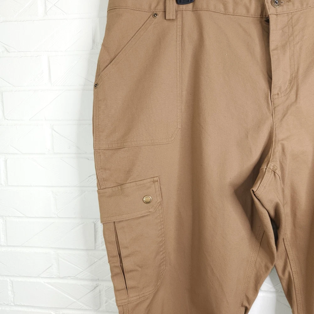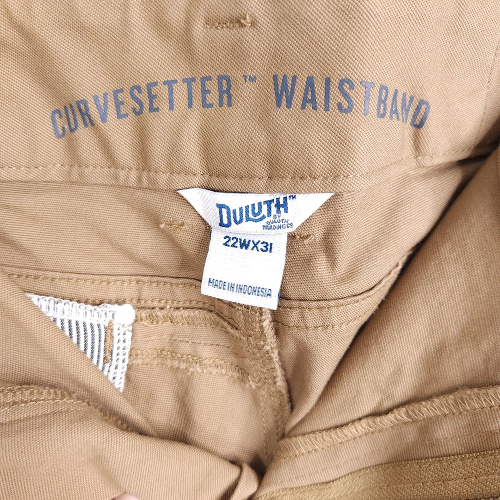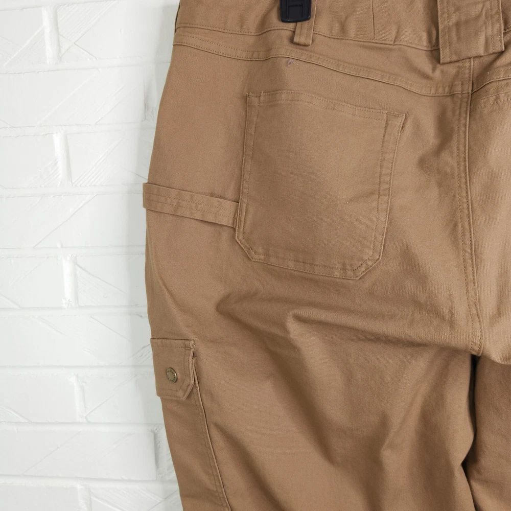 No holes or stains. Excellent used condition. Zipper fly. 8 total pockets, including hidden zip pocket in back. Durable 8oz fire hose material. All measurements are approximate and taken flat across Waistband 23 inches Rise 11 inches Inseam 31 inches