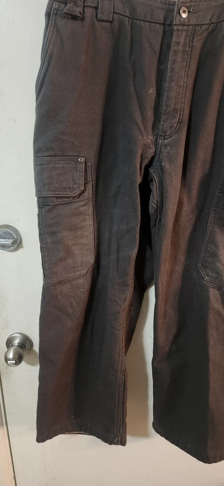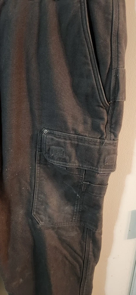 Some white spots on some parts of the pants, very faint, will most likely come out, just a heads up. VERY HEAVY DUTY!!! Fleece lined 40x30