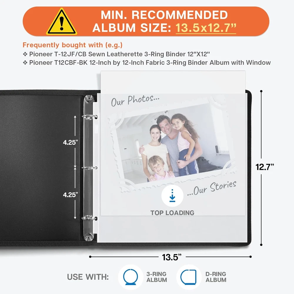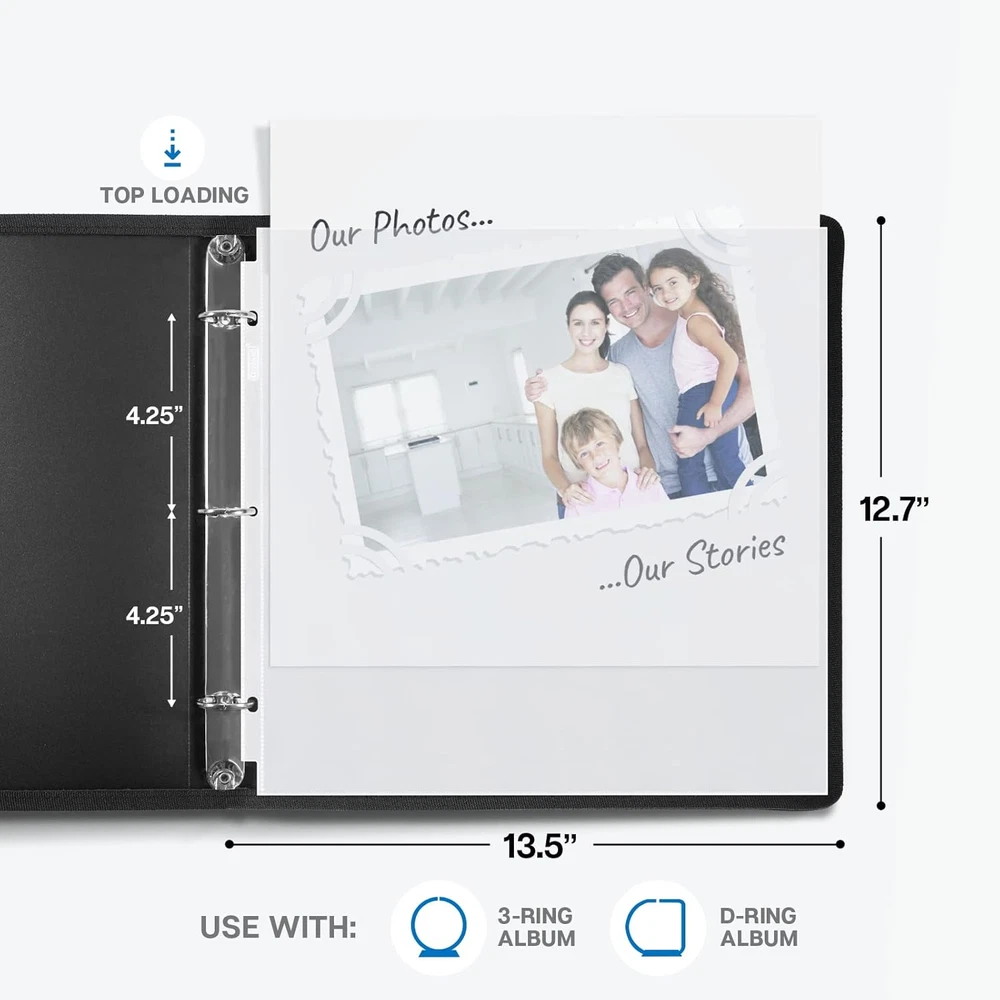Dunwell Scrapbook Refill Pages 12x12 - (25 Pack) Super 12x12", Crystal Clear Product Details Brand: Dunwell Occasion: Engagement, Graduation, Father's Day, Valentine's Day Color: Crystal Clear Material: polypropylene Theme: Love Specific Uses For Product: Scrapbook Recommended Uses For Product: Scrapbook, Photo Album Target Audience: Family Model Name: PTTR12-SHEET Included Components: Sheet Protector Special Feature: Top-Loading, Fits 3-Ring Scrapbook Binders, Pocket Size: 12-3/8" x 12x3/8", Super Heavyweight Poly, Acid-Free, Crystal Clear Style: 25 Pack Pattern: Solid Shape: Square Product Dimensions: 13.19"L x 0.39"W x 12.6"H Occasion: Engagement, Graduation, Father, Valentine's Day Pages: 25 Pages Size: 12x12" Number of Pieces: 25 UPC: 810069740010 Manufacturer: Dunwell Item Weight: 1.1 pounds Item model number: PTTR12-SHEET Batteries required: No 12x12 Scrapbook Page Protectors: Top loading, clear single pocket clear scrapbook sleeves. Heavy duty poly photo album sheet protectors for scrapbookers. NOTE: Paper insert sheets are not included. Set of 25: Plastic 12x12 page protectors display 50 layouts. Protector sheets perfect for photos, postcards, kids artwork, painted canvas, souvenirs, and other treasured collectibles. Size: Scrapbook refill page pockets are 12-3/8" x 12-3/8". External width: 13-1/8" (includes 1/2" 3-hole strip), Height: 12-5/8". 3-hole strip fits standard 3-ring albums. Check Your 12x12 Album Size: Dunwell sleeves fit 3-Ring and D-Ring scrapbooking binders. Recommended minimum album size: 13.5" wide, 12.7" high. Compatible with: 15x13", 15.40 x 13.70". Durable Super Heavyweight Poly: Archive quality acid-free, 12x12 plastic sleeves are constructed of sturdy non-stick poly, 12x12 photo pages are transparent, with no ink lift-off.