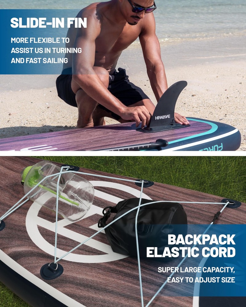 Discover the joy of paddleboarding with the Inflatable Stand Up Paddle Board, designed for adults of all skill levels and even furry friends. Crafted with premium materials, this durable and stable board measures 11' x 34' x 6' and supports up to 350 lbs. Your purchase includes all necessary accessories: an adjustable paddle, detachable fin, safety leash, pump, sup backpack, and waterproof phone bag. The anti-slip EVA deck ensures maximum durability, slip-resistance, and comfort for various water conditions. Easily deflated and rolled up for convenient storage and transportation, this portable paddleboard features double handles, detachable tail fins, and a middle handle for easy lifting. offers excellent customer service, with a 30-day return policy and a 1-year warranty for your satisfaction. 【Attention to Quality and Detail】- Quality is the top priority. inflatable paddle board is crafted from premium materials, measuring 11’ x 34" x 6", weighing 20 lbs, with a capacity up to 350 lbs. It is a durable and stable paddle boards for adults of all skill levels, and also perfect to bring furry pets along. From the design to the production process, we ensures that every detail of the sup paddle board meets high standards. 【Dive into Water Directly】- inflatable paddle board comes with all the necessary sup accessories to get started right away, including 1 adjustable paddle, 1 detachable fin, 1 safety leash, 1 pump, 1 sup backpack, 1 waterproof phone bag. There are D-rings on sup board, which add functionality such as installing a kayak seat for fishing, securing a cooler or connecting with other inflatable sup through these D rings. 【Enhanced Traction and Comfort for Great Foot Feel】- inflatable stand up paddle board are constructed with anti-slip EVA deck for maximum durability, slip-resistance, and comfort. This inflatable sup can be used in various water conditions, such as the ocean, lake, and river, and is versatile enough for yoga, surfing, exploring, traveling, and fishing. 【Portable and Easy to Use】- inflatable paddleboard is easily deflated and rolled up for convenient storage and transportation. The double handles and detachable tail fins make it easy to drag, even when affected by buoyancy, making it easily to lift up from the middle handle on the board. 【Excellent Customer Service and Warranty】- is committed to offering unparalleled customer service for all of the customers. Every ’s product offers a 30-day return policy and a 1-year warranty to ensure complete satisfaction. If there is any issue with the inflatable paddle boards, please don't hesitate to contact us.