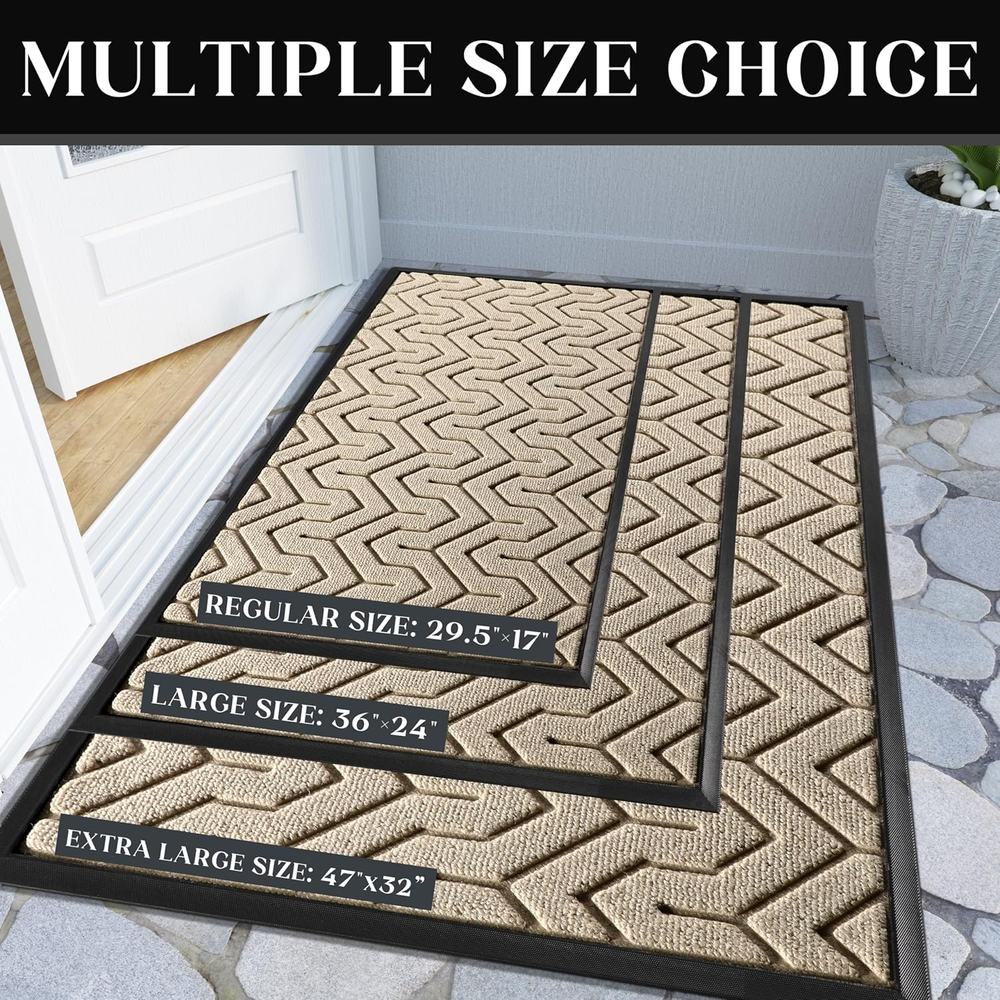 Store New Arrivals Add to Favorite View Feedback Contact Front Door Mat outside Entrance, 29.5X17 Waterproof Outdoor Indoor Welcome Mat, Heavy Duty Doormat, Low Profile, Non Slip Garge Porch Entryway Mat, Easy Clean, Ligth Beige Description Style Garden Weave Type Machine Made Pattern Striped Age Range (Description) Adult Warranty Type Limited Warranty Is Stain Resistant Yes Theme Welcome Number of Pieces 1 Is Autographed No Material Polypropylene Model Name Door Mat Rug Form Type Doormat Item Thickness 0.2 Inches Indoor/Outdoor Usage Outdoor Water Resistance Level Water Resistant Room Type Hallway Item Weight 2 Pounds Pile Height Low Pile Construction Type Machine Made Special Feature Fade Resistant, Heavy Duty, Stain Resistant, Non Slip Color Light Beige Shape Rectangular Back Material Type Rubber Recommended Uses For Product Indoor and outdoor use, suitable for homes, offices, lobbies, terraces, garages, and driveways Product Dimensions 29.5"L x 17"W Size 29.5x17 Inch 【Capture Dirt and Moisture】: Yimobra front door mat adopts triangular striped groove design, forming a detention dam extending in all directions, helping to capture dirt, dust, gravel, mud, sand, grass or other messy debris and prevent them from entering Indoor; The surface of floor mat beautifully woven polyester fabric absorbs moisture, and the sturdy oblique rubber edge will not accumulate water in rainy and snowy days, keeping your home dry and clean 【Rugged and Sturdy】: The surface of this Yimobra outdoor mat is made of high-quality polyester, unique Hot-melt Planting Production Process, which is designed to be sturdy, strong and flexible. The doormat in outside can withstand a variety of weather and seasonal changes, whether it is sunny, rainy or snowy 【Easy to Clean】: Yimobra front door mats outdoor, Just use a vacuum cleaner, or sweep with a broom, or tap the backing and shake the doormat. For more in-depth cleaning, use a garden hose to rinse the floor mat, then hang it in a ventilated place to air dry it 【Non Slip Rubber Backing】: Yimobra heavy duty door mat, 0.20 inch ultra-thin design, can glide under most doors without jamming or curling. The outdoor mat uses a high-quality non-slip rubber backing to help prevent you from slipping when entering or going out, keeping you safe. At the same time, the rubber backing can prevent water and mud from penetrating the floor, keeping door rug in place and not sliding or wear the floor and effectively protect your floor 【Wide Use】: Yimobra versatile welcome mats are stylish and practical, suitable for indoor use to keep the floors of homes, living spaces, lobbies and offices clean, or outdoor use in front doors, sidewalks, terraces, garages, barns, driveways and many others busy areas; Heavy and sturdy materials, soft and flexible; Simple and stylish design complements any decoration Product Description The video showcases the product in use. The video guides you through product setup. The video compares multiple products. The video shows the product being unpacked. 1 OUTDOOR 2 ENTRANCE 3 BALCONY 4 STARIS ABOUT US We offer the best prices around on high quality products. Our E-store includes media such as books, movies, music and games while offering electronics, toys, sporting apparel, clothing, tools, general home, garden items and more. SHIPPING We are always working hard to ensure your package arrives as soon as possible. Please understand that some factors like weather, high postal traffic, and the performance of shipping companies are outside of our control. We offer free shipping to the lower 48 states and ship within 2 business days of payment, usually sooner. We do not accept P.O. Boxes. Please provide a physical address. For shipping outside of the continental USA, we only use eBay's Global Shipping Program.The item is shipped to KY and then sent to the rest of the world. International customers are responsible for all duties and taxes. Continue to check out in order to calculate costs for shipping the item to your country. Messages regarding eBay's Global Shipping Program MUST be directed at eBay EXCLUSIVELY. RETURNS We offer a 30-Day Return Policy on items which you are not completely satisfied with. You have the option for a full-refund or an exchange of the item. No returns are available on items shipped outside of the USA. PAYMENT We accept PayPal. CONTACT US This page content is yet to come Please ad us to your favorite seller and visit again later Thank You CUSTOMER SATISFACTION We try our very best to make sure every customer is completely satisfied. If there's a problem, message us! We're happy to help. WE ACCEPT Copyright © 2021 AutoDS. | All Rights Reserved