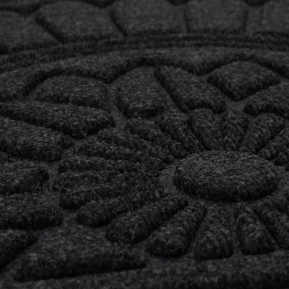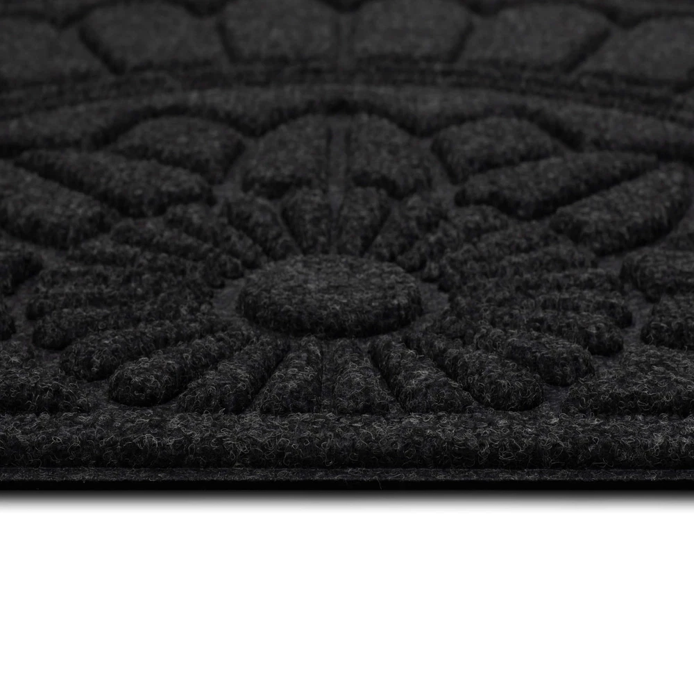 Welcome your guests with the inviting charm of this stylish door mat from , showcasing a functional high/low design in rich color that complements any entryway. Perfect for both indoor and outdoor use, this resilient doormat ensures enduring durability in high-traffic areas and spaces exposed to the elements. Crafted from resilient polyester surface fiber and backed with 100% recycled rubber, this doormat presents an environmentally conscious decor option that is more stylish than ever! The textured polyester surface fiber provides secure traction in all weather conditions, effectively absorbs excess water, and helps remove dirt from shoes before it is tracked indoors. Explore a variety of stylish designs and sizes to bring functional flair to any entryway in your home. DYNAMIC DESIGN: Innovative grooved surface design effectively removes debris from shoes, traps dirt, and channels excess water away before it is brought indoors. EXTRA GRIP: Robust rubber backing provides extra grip to help minimize doormat slipping and sliding on hard surface flooring in high traffic entryways. LOW PROFILE: Low-profile height ensures optimal functionality for any doorway by reducing tripping hazards and entryway obstructions, while allowing doors to open and close freely. EASY CARE & CLEAN: Keep your doormat looking fresh with ease: simply vacuum, sweep, shake out, or rinse off debris with a garden hose, and spot clean when needed; air dry flat. MADE IN THE USA: Proudly made in the USA of U.S. and imported polyester material and recycled rubber ensuring a top-tier sustainable option for every setting.