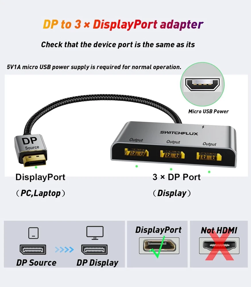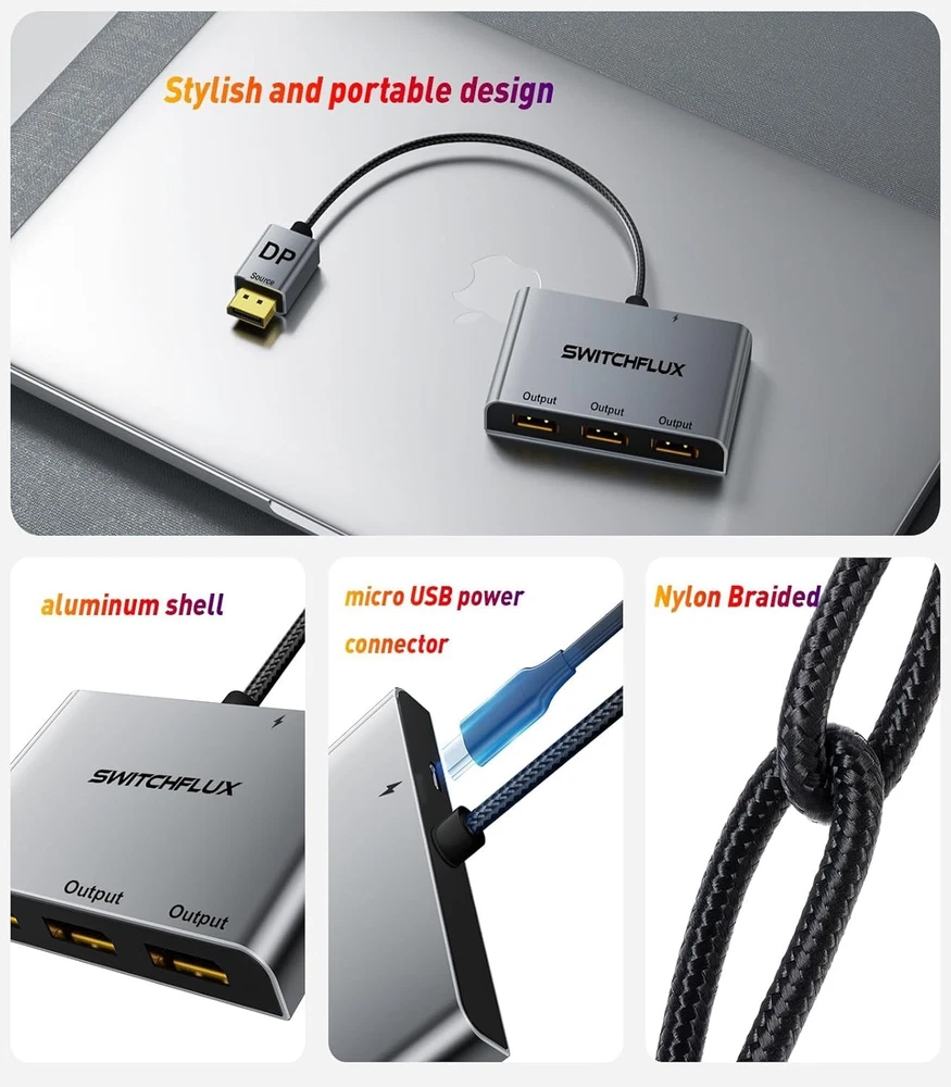 Durable 4K DisplayPort Splitter for Multi-Monitor Setup - Gold-Plated Connectors ‹ › ‹ › ‹ › ‹ › ‹ › ‹ › ‹ › ‹ › ‹ › Durable 4K DisplayPort Splitter for Multi-Monitor Setup Gold-Plated Connectors for Enhanced Durability Unmatched Performance: Transform your computer setup with our DisplayPort splitter that seamlessly extends the monitor functionality, allowing you to mirror the DP signal from one source to either SST or extend MST to three DP monitors. Experience breathtaking clarity with 4K UHD visuals while simultaneously transmitting high-quality audio and video. Note: For optimal display results, ensure to connect the Micro USB cable. This device is designed to function unidirectionally from a DP source to a DP display device. Not compatible with any docking/hub/KVM setups. 4K UHD Resolution / Audio & Video Sync Transmission: Supports HDCP 2.2 Single DP screen resolution up to 4K@60Hz Dual DP screen resolution up to 4K@60/30Hz Backward compatible with 2K@120Hz/60Hz and 1080P@120Hz/60Hz Note: To achieve 4K resolution, ensure that the input device ports meet the minimum standard of DP version 1.2, and that the output ports of the source device support DP/DP++/DisplayPort++. Extended/Mirror Display, Plug and Play: Effortlessly connect and enjoy your visuals with a DisplayPort Male to DisplayPort Female splitter. This device is fully plug-and-play—no driver installation required! Instantly mirror or extend the DP signal to two or more monitors with zero loss in quality, enhancing your viewing experience. Note: In case of issues with the extended mode, updating your graphics card driver to the latest version may solve the problem. Rugged Design: Our DisplayPort splitter is constructed from a thin aluminum alloy one-piece housing that ensures excellent corrosion resistance and heat dissipation. The stylish design is complemented by a durable nylon braided splitter cable that withstands twisting and bending. With 24K gold-plated connectors, this splitter delivers outstanding endurance, passing the test of over 10,000 plug and unplug cycles. Why Choose Our DisplayPort Splitter? At , we pride ourselves on crafting high-quality and reasonably priced products designed to simplify your connection needs. Dedicated to excellence, we provide responsive support within 18 hours for any inquiries. Elevate your multi-monitor setup with our unparalleled DisplayPort splitter. Experience sophistication in simplicity—order now! Shipping Free & Fast Shipping - We offer free shipping to most of the USA with a normal delivery time of 3-10 businessdays. However, due to various situations, additional delivery time (up to 3 weeks) may be required for some items. Alternative Carriers - We may use alternative carriers (e.g. USPS, FedEx, UPS, etc.) to ensure your package arrives safely and on time. Due to the use of multiple carriers, we are unable to provide a tracking number automatically. Handling Time - Orders are processed and shipped within 1-5 business days of receiving cleared payment. Shipping Restrictions - Shipping to Alaska, Hawaii, Puerto Rico, Guam, and other US territories may incur shipping charges or delivery restrictions. Please contact us before ordering, or your order can be refunded/cancelled. State Restrictions - There may be restrictions based on your state of purchase. For example, certain items may not be shipped to California due to state regulations. Contact for Tracking Updates - If you require tracking updates or have any concerns about the delivery of your order, please feel free to contact us, and we will be happy to assist you. Return Please see our ebay return policy. We do not accept return on most products. This is to avoid customers mis-using ebay returns. All sales are final. Please be sure to check the return policy listed at the top of the listing. In rare cases, we may accept returns, if the buyer pays both ways shipping and 20% restocking fee. If you are un-sure of return policy of a particular item, please ask before buying. Payment We accept all major credit cards, PayPal, and Apple Pay for your convenience. Your payment information is secure and encrypted to ensure a safe and seamless transaction. Please complete your payment within 3 days of purchase to avoid any delays in shipping. Feedback Your feedback is extremely important to us. We strive to provide the best products and customer service possible. If you are satisfied with your purchase, please take a moment to leave us a positive review. If you have any concerns or issues with your order, please contact us before leaving negative feedback. We are committed to resolving any problems and ensuring your satisfaction. Contact Us If you have any questions or concerns, please feel free to reach out to our customer support team. You can contact us through the eBay messaging system. We are available Monday to Friday, 9:00 am to 5:00 pm EST, and we will do our best to respond to your inquiry within 24 hours. Buy it now and enjoy a pleasant shopping experience! MPN: DisplayPort_Splitter_for_Multiple_Monitors UPC: Not Set Model: Not Set Unit Quantity: 4.6 Connector A: DisplayPort Male Connector(s) B: DisplayPort Female Features: Plug and Play,Rugged design,Extended Display,Mirror Display Brand: Unbranded Type: DisplayPort Splitter Connection Split/Duplication: 1 : 3 Cable Length: Not Set Color: Black