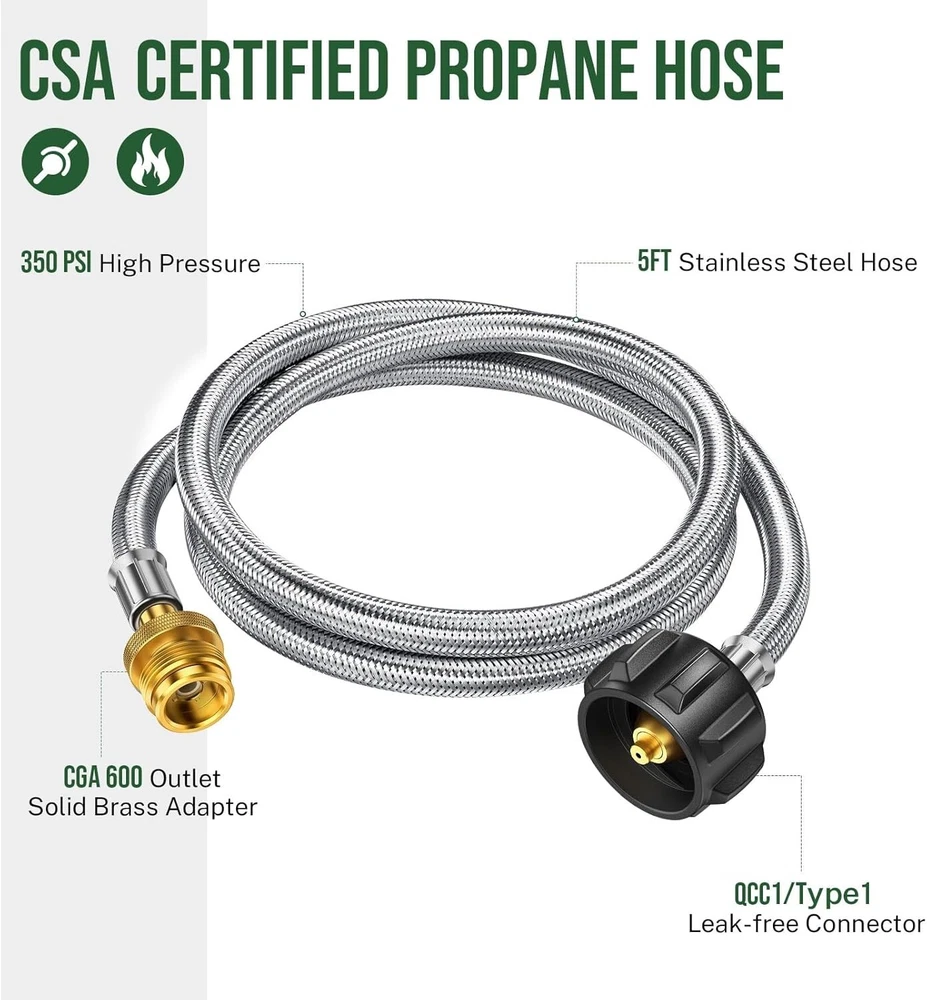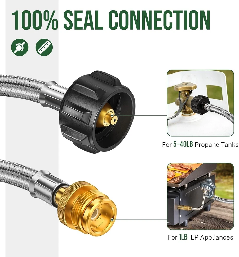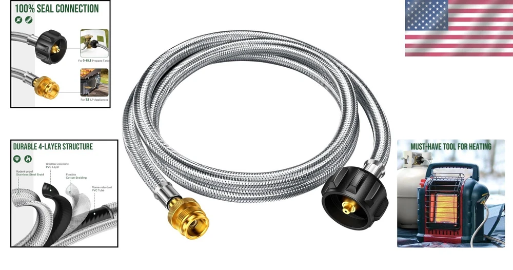 Durable 5FT Propane Tank Adapter - Convert 1lb to 20lb for Grills & Heaters ‹ › ‹ › ‹ › ‹ › ‹ › ‹ › ‹ › ‹ › ‹ › ‹ › Durable 5FT Propane Tank Adapter - Convert 1lb to 20lb for Grills & Heaters Features: Compatible with Weber Q grills, Coleman camping stoves, Blackstone 17" & 22" griddles, and Buddy heaters. Easily connects most 1lb. LP outdoor appliances to 5-40lb propane tanks. Heavy-duty brass fittings ensure an easy and secure connection. Designed with updated stainless steel braiding for rodent protection. Constructed from weather-resistant PVC and high-tensile cotton braiding. Flexible 4-layer structure ensures durability and resistance to harsh outdoor conditions. Easy installation in under 2 minutes; no tools required. 1-year commitment to quality support and solutions. Benefits: Cost-effective solution to replace expensive 1lb propane bottles, saving you up to $100. Minimize waste caused by disposable bottles while enjoying longer-lasting propane supply. Increased flexibility and safety with a 5ft length for better appliance and tank setup. Secure and durable connection means peace of mind during grilling or heating. Rigorously tested and CSA certified for superior performance and security. Why Choose Our Propane Tank Adapter? If you seek an elegant and efficient solution to your outdoor heating and grilling needs, look no further than our Durable 5FT Propane Tank Adapter. This exceptional product offers compatibility with a range of outdoor appliances and enables you to leverage larger, more affordable propane tanks, ultimately saving you money while minimizing waste. Experience the convenience of a secure and simple installation—achieved in just two minutes without any tools. With its robust construction designed to withstand the elements, you can enjoy safe and efficient use of your outdoor equipment anywhere, anytime. Upgrade your outdoor cooking experience today with our reliable propane tank adapter; your next grilling adventure awaits! Shipping Free & Fast Shipping - We offer free shipping to most of the USA with a normal delivery time of 3-7 days. However, due to the current situation, additional delivery time (up to 3 weeks) may be required for some items. Alternative Carriers - We may use alternative carriers (e.g. USPS, FedEx, UPS, etc.) to ensure your package arrives safely and on time. Due to the use of multiple carriers, we are unable to provide a tracking number automatically. Handling Time - Orders are processed and shipped within 1-2 business days of receiving cleared payment. Shipping Restrictions - Shipping to Alaska, Hawaii, Puerto Rico, Guam, and other US territories may incur shipping charges or delivery restrictions. Please contact us before ordering, or your order can be refunded/cancelled. State Restrictions - There may be restrictions based on your state of purchase. For example, certain items may not be shipped to California due to state regulations. Contact for Tracking Updates - If you require tracking updates or have any concerns about the delivery of your order, please feel free to contact us, and we will be happy to assist you. Return 30-Day Hassle-Free Returns - We want you to be completely satisfied with your purchase. If you are not, you can return the item within 30 days of receiving it for a full refund or exchange. Easy Return Process - To start a return, simply contact us and we will provide you with a prepaid return shipping label and detailed instructions. Restocking Fee - There are no restocking fees for returns. However, the buyer is responsible for return shipping costs if the return is not due to a seller's error. Refund Processing Time - Refunds will be processed within 5 business days of receiving the returned item in its original condition. Payment We accept all major credit cards, PayPal, and Apple Pay for your convenience. Your payment information is secure and encrypted to ensure a safe and seamless transaction. Please complete your payment within 3 days of purchase to avoid any delays in shipping. Feedback Your feedback is extremely important to us. We strive to provide the best products and customer service possible. If you are satisfied with your purchase, please take a moment to leave us a positive review. If you have any concerns or issues with your order, please contact us before leaving negative feedback. We are committed to resolving any problems and ensuring your satisfaction. Contact Us If you have any questions or concerns, please feel free to reach out to our customer support team. You can contact us through the eBay messaging system. We are available Monday to Friday, 9:00 am to 5:00 pm EST, and we will do our best to respond to your inquiry within 24 hours. Buy it now and enjoy a pleasant shopping experience! UPC: Not Set Unit Quantity: 5 Set Includes: Propane Hose Adapter Features: Easy Clean,Reusable,Rust Resistant,Weather-resistant construction,Durable 4-layer structure,Easy installation,Lightweight,Cost-saving compatibility Type: Propane Hose Adapter Brand: Unbranded Number in Pack: 1 Color: Brass Handle Material: Brass Item Weight: 1 lb Size: 5 ft Head Material: Brass Finish: Brushed Country/Region of Manufacture: Not Set Item Height: Not Set Item Width: Not Set Model: Not Set Year Manufactured: Not Set Number of Items in Set: One-Piece Style: Modern MPN: Not Set Manufacturer Warranty: Not Set Unit Type: ft Personalize: Not Set