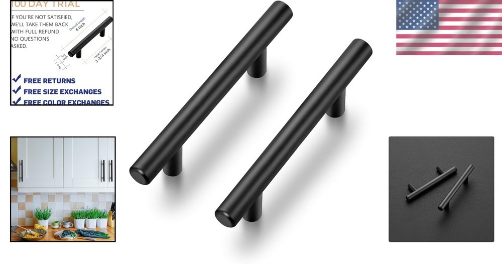 Durable 60 Pack - 6'' Matte Black Stainless Steel Pulls for Cabinets & Wardrobes ‹ › ‹ › ‹ › ‹ › ‹ › ‹ › ‹ › ‹ › ‹ › ‹ › ‹ › Durable 60 Pack - 6'' Matte Black Stainless Steel Pulls for Cabinets & Wardrobes Transform your home with our sophisticated and modern Matte Black Stainless Steel Pulls . Ideal for cabinets, wardrobes, chests, and cupboards, these pulls effortlessly enhance any space with a touch of elegance. Specifications: Hole Centers (CC): 3-3/4 inch (96mm) Total Length: 6 inch (152mm) Diameter: 1/2 inch (12mm) Projection: 1-1/4 inch (32mm) Features: Durable & Strong: Crafted from high-quality matte black stainless steel, our pulls are not only visually appealing but also built to last. Widely Compatible: Our cabinet handles blend both traditional and modern styles, ensuring compatibility with various kitchen cabinet designs. Convenient Installation: Each set includes short screws (1”) and long screws (1.57”) for hassle-free mounting. 100-Day Free Trial: We’re confident you'll love our product, and we offer a trial period to ensure your complete satisfaction. Why Choose Our Matte Black Stainless Steel Pulls? Elevate your interior décor with our elegantly crafted Matte Black Pulls, perfect for adding a contemporary touch to your cabinetry. Designed to blend seamlessly with a variety of styles, these pulls make a striking addition to any home. Their robust construction guarantees longevity and strength while maintaining a sleek appearance. Experience both beauty and functionality with our cabinet hardware. Embrace the opportunity to customize your space elegantly—order your 60 pack of Matte Black Pulls today! Shipping Free & Fast Shipping - We offer free shipping to most of the USA with a normal delivery time of 3-7 days. However, due to the current situation, additional delivery time (up to 3 weeks) may be required for some items. Alternative Carriers - We may use alternative carriers (e.g. USPS, FedEx, UPS, etc.) to ensure your package arrives safely and on time. Due to the use of multiple carriers, we are unable to provide a tracking number automatically. Handling Time - Orders are processed and shipped within 1-2 business days of receiving cleared payment. Shipping Restrictions - Shipping to Alaska, Hawaii, Puerto Rico, Guam, and other US territories may incur shipping charges or delivery restrictions. Please contact us before ordering, or your order can be refunded/cancelled. State Restrictions - There may be restrictions based on your state of purchase. For example, certain items may not be shipped to California due to state regulations. Contact for Tracking Updates - If you require tracking updates or have any concerns about the delivery of your order, please feel free to contact us, and we will be happy to assist you. Return Please see our eBay Return Policy. Thank you. Payment We accept all major credit cards, PayPal, and Apple Pay for your convenience. Your payment information is secure and encrypted to ensure a safe and seamless transaction. Please complete your payment within 3 days of purchase to avoid any delays in shipping. Feedback Your feedback is extremely important to us. We strive to provide the best products and customer service possible. If you are satisfied with your purchase, please take a moment to leave us a positive review. If you have any concerns or issues with your order, please contact us before leaving negative feedback. We are committed to resolving any problems and ensuring your satisfaction. Contact Us If you have any questions or concerns, please feel free to reach out to our customer support team. You can contact us through the eBay messaging system. We are available Monday to Friday, 9:00 am to 5:00 pm EST, and we will do our best to respond to your inquiry within 24 hours. Thank you for supporting our small family business! UPC: Not Set Unit Quantity: 6.99 Material: Stainless Steel Suitable For: Cupboard,Cabinets,Wardrobe Brand: Unbranded Type: Handle Pull Color: Black Item Length: 6 in Finish: Matte Item Diameter: 0.5 in MPN: Not Set Number in Pack: 60 Style: Modern Center-to-Center Measurement: 3.75 in Country/Region of Manufacture: Not Set Door Handing: Not Set Extension Length: Not Set Manufacturer Warranty: Not Set Unit Type: lb Fixings Supplied: Not Set