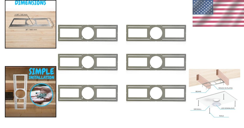 Durable 6-Pack Slim Light Kit Brackets for New Construction Recessed Fixtures ‹ › ‹ › ‹ › ‹ › ‹ › ‹ › ‹ › ‹ › Durable 6-Pack Slim Light Kit Brackets Enhance your new construction projects with our premium light kit brackets, designed to accommodate recessed fixtures with elegance and precision. Key Features: Constructed from top-quality galvanized steel for superior durability and longevity. Easy mounting facilitated by slots with alignment notches for precise placement. Available in sizes for recessed holes ranging from 2 inches to 8 inches to meet diverse lighting needs. Lightweight material minimizes the likelihood of rust while ensuring lasting integrity. Designed for convenient planning of lighting layouts before drywall installation. Compatibility with various structural layouts through strategically placed mounting holes and tracks. Benefits: Ensures your lighting fixtures are installed with precision and stability. Facilitates a smooth installation process, saving you valuable time on your project. Ideal for both residential and commercial settings, accommodating any design aesthetic. Flexible compatibility with different LED light types ensures versatility in design choices. Offers peace of mind with structural integrity through high-quality materials and construction. Why Choose Our Slim Light Kit Brackets? When it comes to perfecting your lighting setups in new constructions, quality and reliability are paramount. Our Durable 6-Pack Slim Light Kit Brackets not only promise strength but also deliver on ease of use and versatility, making them an indispensable choice for your projects. Say goodbye to lighting installation hassles and elevate your construction capabilities today! Don’t wait—experience the fusion of functionality and elegance in every installation. Order your set of Durable Slim Light Kit Brackets now! Shipping Free & Fast Shipping - We offer free shipping to most of the USA with a normal delivery time of 3-7 days. However, due to the current situation, additional delivery time (up to 3 weeks) may be required for some items. Alternative Carriers - We may use alternative carriers (e.g. USPS, FedEx, UPS, etc.) to ensure your package arrives safely and on time. Due to the use of multiple carriers, we are unable to provide a tracking number automatically. Handling Time - Orders are processed and shipped within 1-2 business days of receiving cleared payment. Shipping Restrictions - Shipping to Alaska, Hawaii, Puerto Rico, Guam, and other US territories may incur shipping charges or delivery restrictions. Please contact us before ordering, or your order can be refunded/cancelled. State Restrictions - There may be restrictions based on your state of purchase. For example, certain items may not be shipped to California due to state regulations. Contact for Tracking Updates - If you require tracking updates or have any concerns about the delivery of your order, please feel free to contact us, and we will be happy to assist you. Return 30-Day Hassle-Free Returns - We want you to be completely satisfied with your purchase. If you are not, you can return the item within 30 days of receiving it for a full refund or exchange. Easy Return Process - To start a return, simply contact us and we will provide you with a prepaid return shipping label and detailed instructions. Restocking Fee - There are no restocking fees for returns. However, the buyer is responsible for return shipping costs if the return is not due to a seller's error. Refund Processing Time - Refunds will be processed within 5 business days of receiving the returned item in its original condition. Payment We accept all major credit cards, PayPal, and Apple Pay for your convenience. Your payment information is secure and encrypted to ensure a safe and seamless transaction. Please complete your payment within 3 days of purchase to avoid any delays in shipping. Feedback Your feedback is extremely important to us. We strive to provide the best products and customer service possible. If you are satisfied with your purchase, please take a moment to leave us a positive review. If you have any concerns or issues with your order, please contact us before leaving negative feedback. We are committed to resolving any problems and ensuring your satisfaction. Contact Us If you have any questions or concerns, please feel free to reach out to our customer support team. You can contact us through the eBay messaging system. We are available Monday to Friday, 9:00 am to 5:00 pm EST, and we will do our best to respond to your inquiry within 24 hours. Thank you for supporting our small family business! UPC: Not Set Lumens: 900 lm Item Height: LED Downlight Mounting Plates Item Length: LED Downlight Mounting Plates Item Weight: 4 pounds Item Width: Not Set Power Consumption: 60 W Unit Quantity: 6 Material: Galvanized Steel,Alloy Steel Room: Bedroom,Kitchen,Living Room Light Color: Gray,Silver Features: Dimmable Department: Adults Occasion: Casual Light Direction: Indirect Labels & Certifications: Not Set Brand: Unbranded Type: Recessed Sensor Type: Light Style: Modern Lighting Technology: LED Color: Silver Finish: Steel Number of Settings: 1 Shade Shape: Flat Power Source: Corded Installation Area: Indoor Energy Star: Not Set LED String/Strip Type: Not Set Control Style: Not Set MPN: Not Set EC Range: Not Set Manufacturer: Not Set Item Diameter: Not Set Voltage: 120 V Year Manufactured: Not Set Number of Lights: 6 Amperage: Not Set Country/Region of Manufacture: Not Set Output Voltage: Not Set IP Rating: Not Set Era: Not Set Manufacturer Warranty: Not Set Color Temperature: Not Set LED Chip Code: Not Set Model: Not Set Product Line: Not Set Unit Type: Unit Assembly Required: Not Set