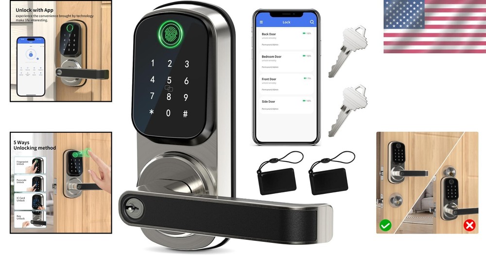 Durable Aluminum Keyless Door Lock - Fingerprint Entry & Password Protection ‹ › ‹ › ‹ › ‹ › ‹ › ‹ › ‹ › ‹ › ‹ › ‹ › Durable Aluminum Keyless Door Lock Experience the ultimate blend of security and convenience with our innovative Fingerprint Entry & Password Protection system. Key Features: Keyless Entry: Eliminate the hassle of physical keys. Enjoy easy access while enhancing the security of your home or office. Smart Technology: Integrates seamlessly with your smartphone app, empowering you with remote control capabilities, temporary password generation, and unlocking record tracking. Advanced Security: Equipped with an anti-peeping password input feature, ensuring your home remains safeguarded against unauthorized access. Emergency Power Supply: Prevent lockouts with an emergency power supply interface, guaranteeing reliable access at all times. Sleek Design: Features a modern keypad door lock with handle for a sophisticated look and user-friendly experience. Effortless Installation: Designed with a standard size, our lock comes with a comprehensive installation guide, making it easy to install on most door types. Benefits: Enhance security without the need for traditional keys. Enjoy the convenience of smartphone integration for seamless access. Stay informed with unlocking records for complete peace of mind. Create temporary passwords for guests or service personnel. Settle into a sleek and modern design that complements contemporary home aesthetics. Why Choose Our Keyless Door Lock? Elevate your security game with our Durable Aluminum Keyless Door Lock. Its combination of robust materials and state-of-the-art technology ensures long-lasting protection against tampering and the elements. Perfectly designed for front doors, this lock not only adds a layer of sophistication to your entrance but also embraces modern convenience, making it a must-have for any homeowner. Don't compromise on safety or style. Upgrade your home's security with our Keyless Door Lock today and enjoy unparalleled peace of mind! Shipping Free & Fast Shipping - We offer free shipping to most of the USA with a normal delivery time of 3-7 days. However, due to the current situation, additional delivery time (up to 3 weeks) may be required for some items. Alternative Carriers - We may use alternative carriers (e.g. USPS, FedEx, UPS, etc.) to ensure your package arrives safely and on time. Due to the use of multiple carriers, we are unable to provide a tracking number automatically. Handling Time - Orders are processed and shipped within 1-2 business days of receiving cleared payment. Shipping Restrictions - Shipping to Alaska, Hawaii, Puerto Rico, Guam, and other US territories may incur shipping charges or delivery restrictions. Please contact us before ordering, or your order can be refunded/cancelled. State Restrictions - There may be restrictions based on your state of purchase. For example, certain items may not be shipped to California due to state regulations. Contact for Tracking Updates - If you require tracking updates or have any concerns about the delivery of your order, please feel free to contact us, and we will be happy to assist you. Return 30-Day Hassle-Free Returns - We want you to be completely satisfied with your purchase. If you are not, you can return the item within 30 days of receiving it for a full refund or exchange. Easy Return Process - To start a return, simply contact us and we will provide you with a prepaid return shipping label and detailed instructions. Restocking Fee - There are no restocking fees for returns. However, the buyer is responsible for return shipping costs if the return is not due to a seller's error. Refund Processing Time - Refunds will be processed within 5 business days of receiving the returned item in its original condition. Payment We accept all major credit cards, PayPal, and Apple Pay for your convenience. Your payment information is secure and encrypted to ensure a safe and seamless transaction. Please complete your payment within 3 days of purchase to avoid any delays in shipping. Feedback Your feedback is extremely important to us. We strive to provide the best products and customer service possible. If you are satisfied with your purchase, please take a moment to leave us a positive review. If you have any concerns or issues with your order, please contact us before leaving negative feedback. We are committed to resolving any problems and ensuring your satisfaction. Contact Us If you have any questions or concerns, please feel free to reach out to our customer support team. You can contact us through the eBay messaging system. We are available Monday to Friday, 9:00 am to 5:00 pm EST, and we will do our best to respond to your inquiry within 24 hours. Buy it now and enjoy a pleasant shopping experience! UPC: Not Set Model: Smart Door Lock Unit Quantity: 3.62 Material: Aluminum Suitable For: Front Door Mounting: Universal Features: Adjustable Backset,Easy to Install,Electronic,Keyless,Fingerprint Items Included: Hardware,Door Lock Brand: Unbranded Type: Smart Door Lock Color: Silver Finish: Unfinished Item Height: Not Set Throw Length: Not Set Item Width: Not Set Cross Bore Diameter: 2.5 in MPN: Not Set Number in Pack: 1 Style: Modern Item Depth: 2.7 inches Country/Region of Manufacture: Not Set Door Handing: Universal/Reversible Manufacturer Warranty: Not Set Item Weight: 3.62 pounds ANSI Grade: ANSI Grade 2 (Better) Unit Type: lb Fixings Supplied: Not Set
