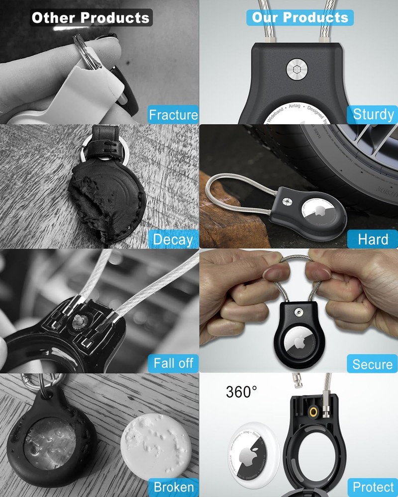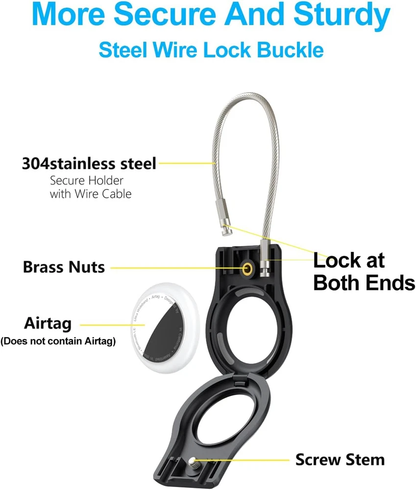 Airtag Keychain Holder with Wire Cable, Secure Lock Black Product Details Pattern: Geometric Brand: SCALLOP Item dimensions L x W x H: 2.76 x 1.57 x 0.39 inches Number of Pieces: 1 Style: Classic Shape: Hexagonal Item Weight: 20 Grams Product Dimensions: 2.76 x 1.57 x 0.39 inches Item Weight: 0.705 ounces Item model number: FK-GSS-1-B Special features: Heavy Duty Protection Other display features: Wireless Form Factor: Case Department: unisex-adult Manufacturer: SCALLOP Country of Origin: China Color: Black Material: Polycarbonate Theme: Car Special Feature: Heavy Duty Protection Closure Type: Screw 【Super Hard and Sturdy Airtag keychain】The Secure Airtag holder keychain adopts hexagon socket screw locking and durable braided steel cable to secure fix the New Apple Air Tag in the airtag watch key chain , so there is no need to worry about the apple airtag keychain slipping off and being violently damaged.This airtag holder keychain features a hollowed out design to ensure the integrity of the apple airtag signal.( airtag accessories does not contain iphone apple air tag gps tracker) 【Lighter and More Classic Airtag Holder】The air tag holder is made of sturdy PC material, weighing only 12 grams, which is wear-resistant, scratch resistant, and has no weight burden.This airtag holder keychain adopting classic minimalist design, using new apple air tag is more fashionable and tasteful. 【360°Full Protection Airtag keychain】SCALLOP Air Tag case Using the original Apple Airtag model with a 1:1 precision mold opening ensures the safety of the Air tag without affecting the signal. The raised edges of the airtag watch key chain protect your Apple Air Tags from bumps and scratches. Air tag keychain Wire cable has a rubber coating to prevent accidental scratches on your bag or braid. 【Secure Locking Air Tag holder】Air tag case are equipped with airtag lock clip, Apple Airtag key chain Using sturdy metal diameter 3mm wire rope, comes with a Specialized anti-theft hexagonal wrench. insert the Apple AirTag, thread the airtag watch key chain wire cable through the item, rugged and sturdy, Airtag luggage tag holder stretched 4cm apart can pass through most luggage,keys,car keys,key ring,Toddler kids adults backpack, ensuring the apple airtag falls off. 【Secure Airtag Holder Widely Used】Apple airtag keychain holder Use the metal wire cable built into the air tag holder to secure attach the Apple AirTag gps tracker to your keychain,key chain, key,keys,key ring,car keys,backpack, Toddler kids adults backpack,pet, bicycle or luggage so that your items will no longer be lost.AirTag case have developed a series of air tags-1, 2, and 4 pack apple AirTag holders in different colors and combinations for you to choose from.